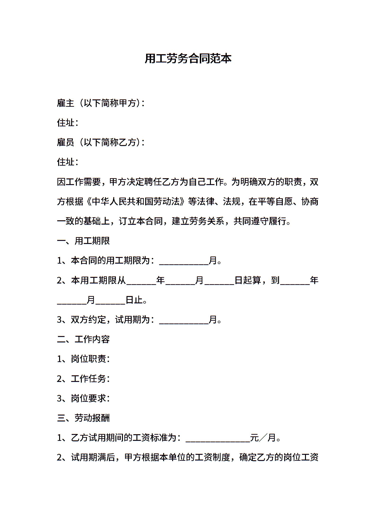 当前位置:量子办公 > 合同模板 > 劳务合同 >