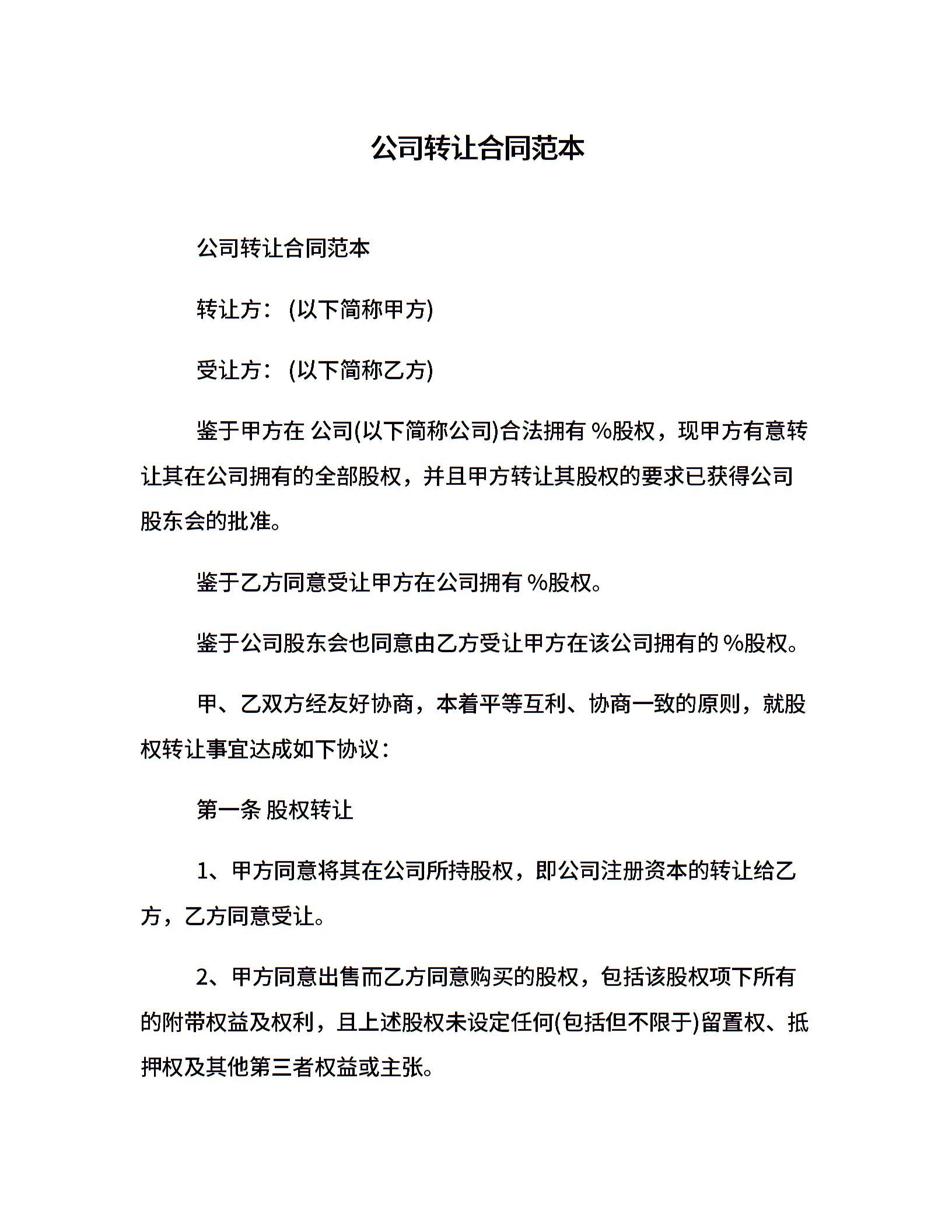 公司转让合同范本
