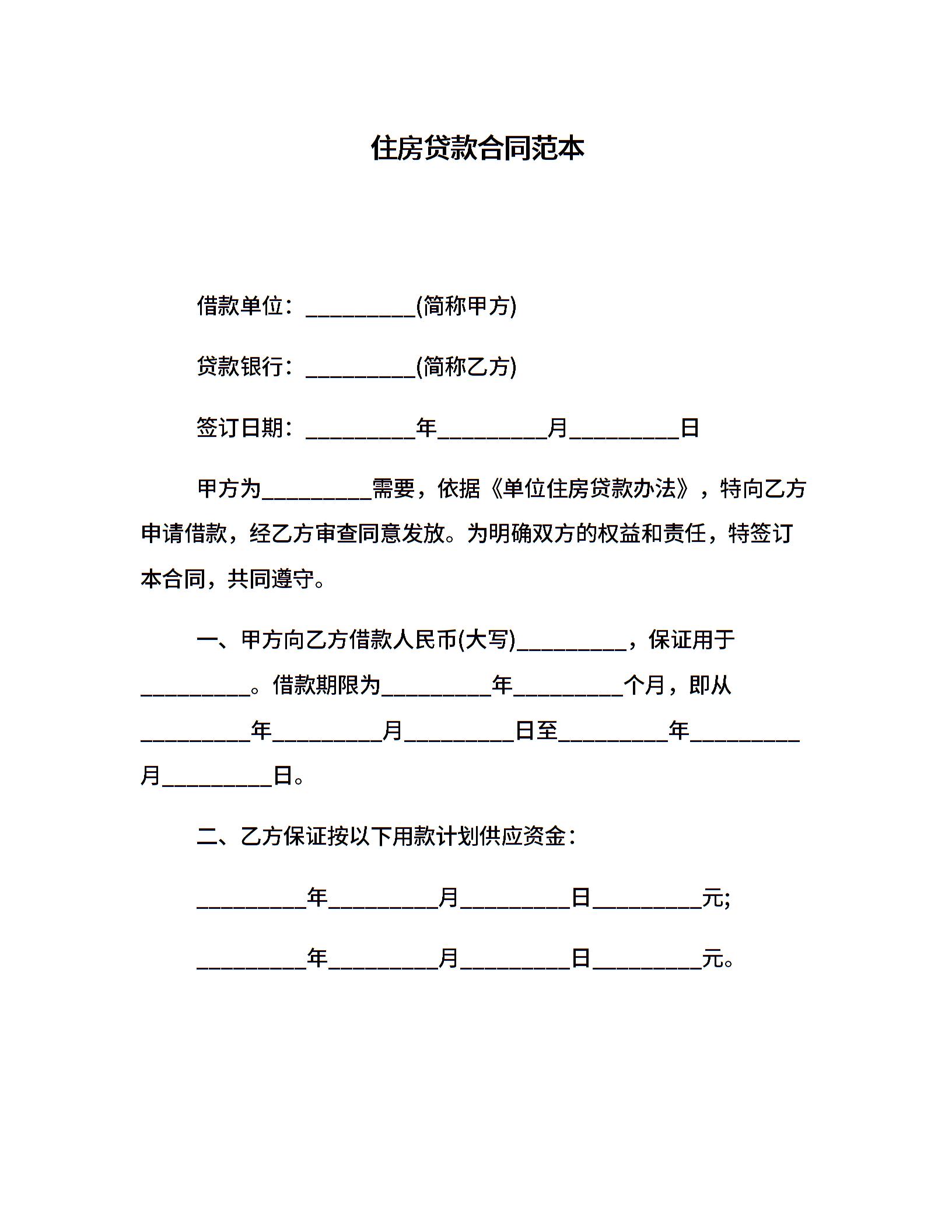 住房贷款合同范本
