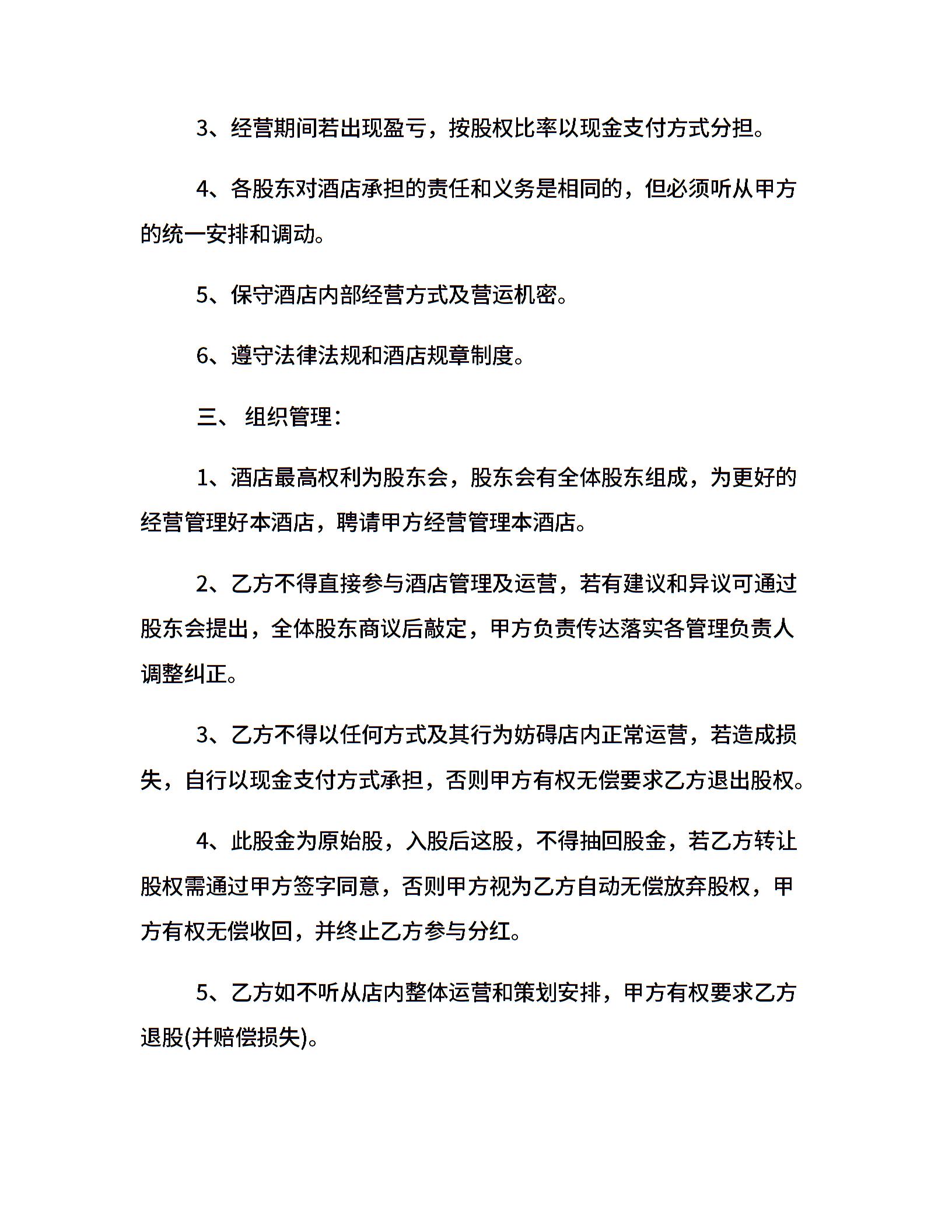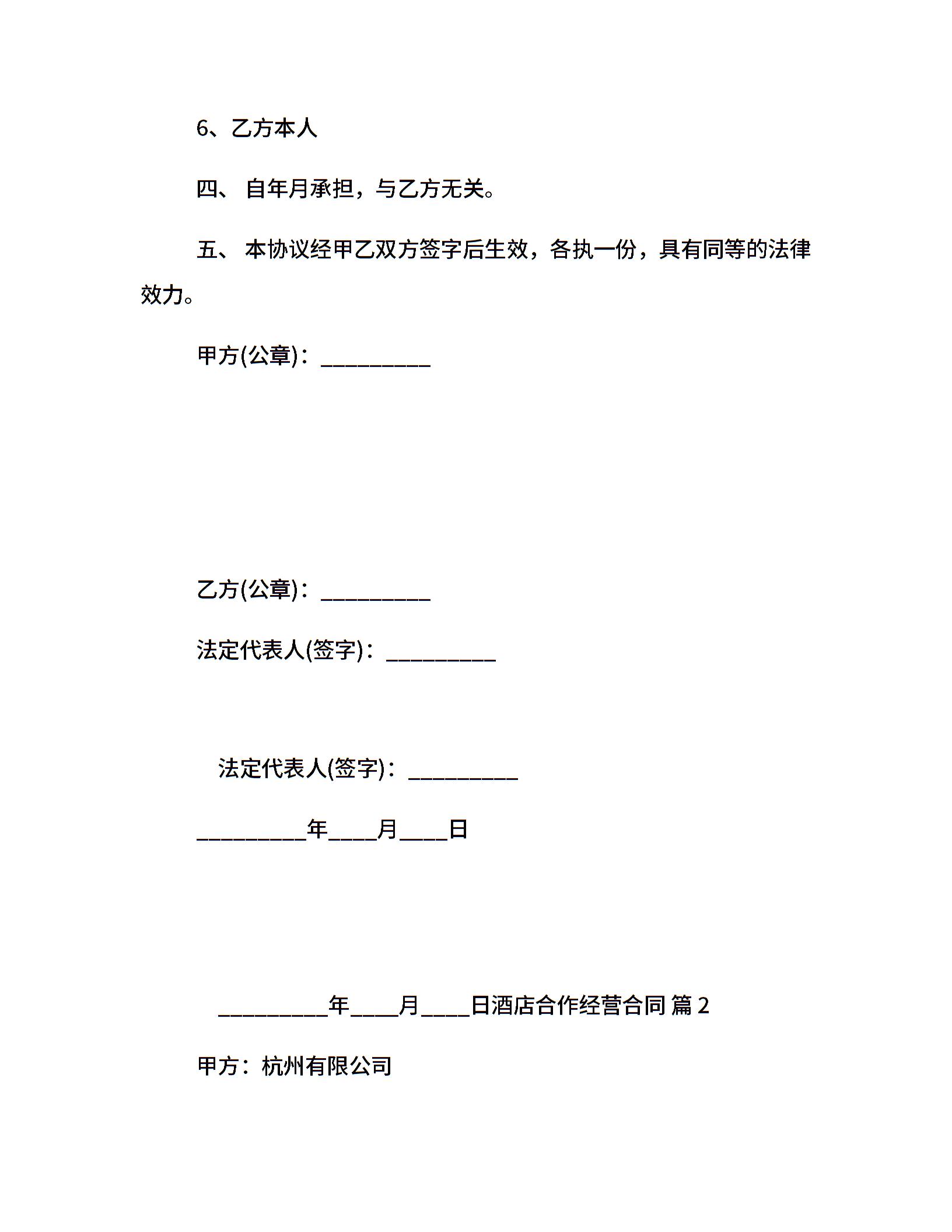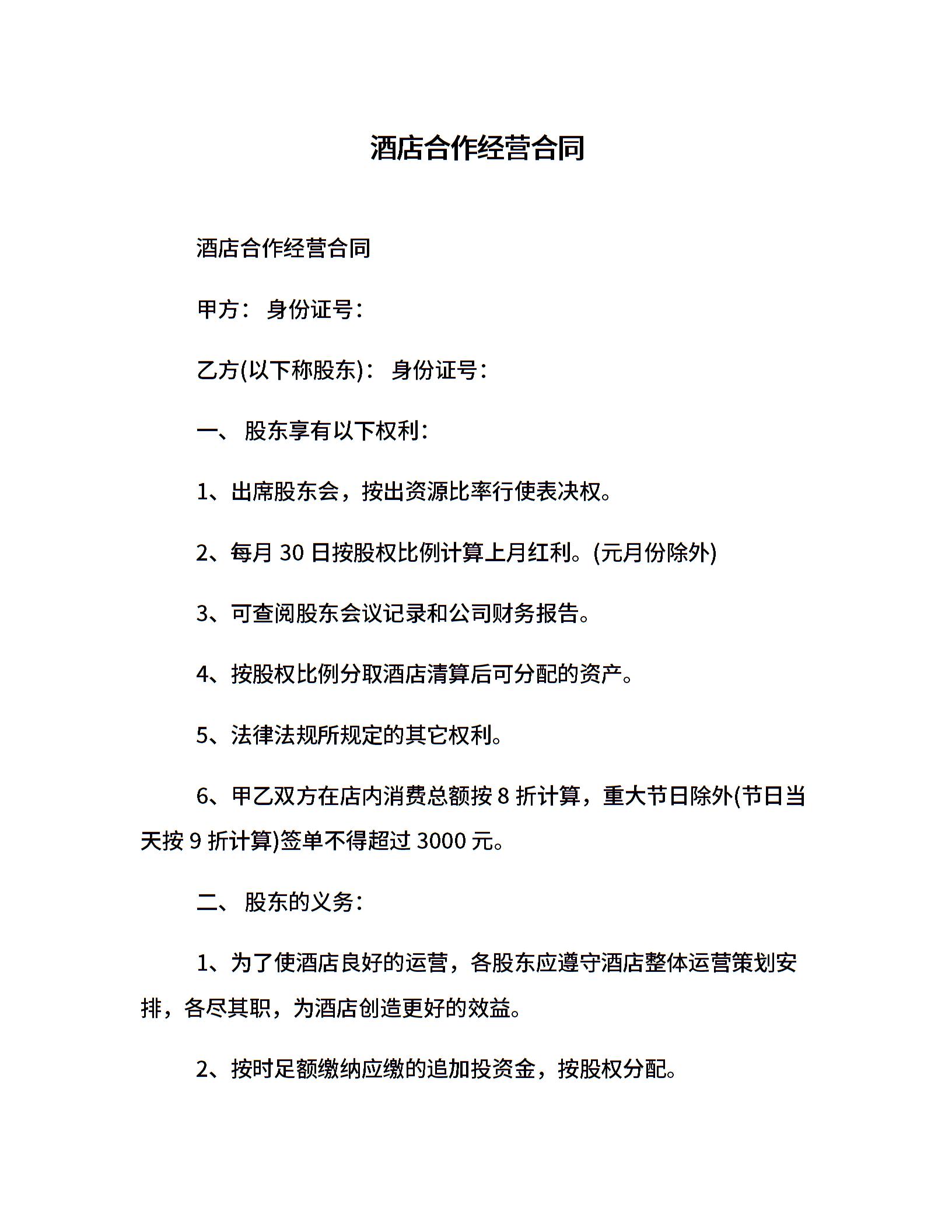 酒店合作经营合同