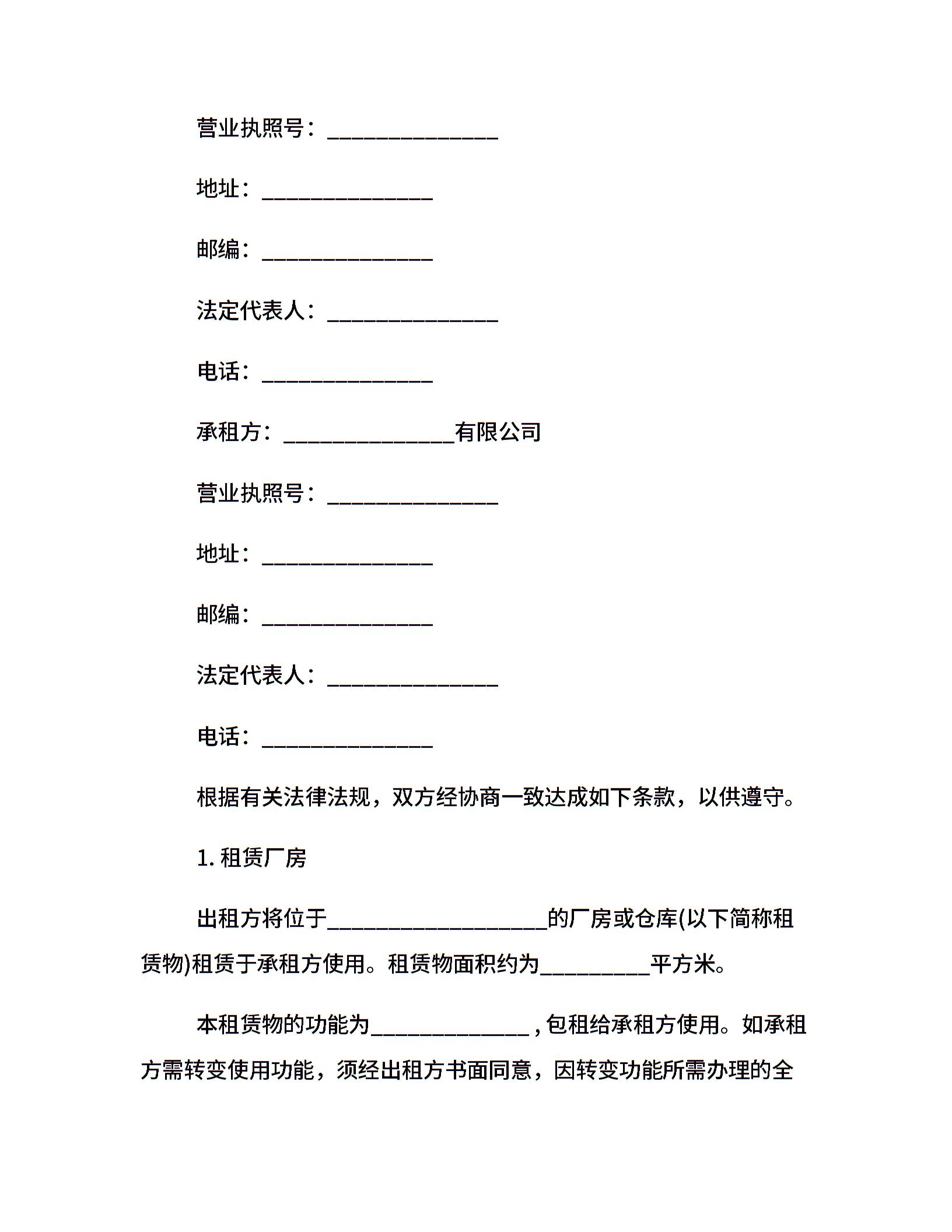 深圳市厂房租赁合同范本
