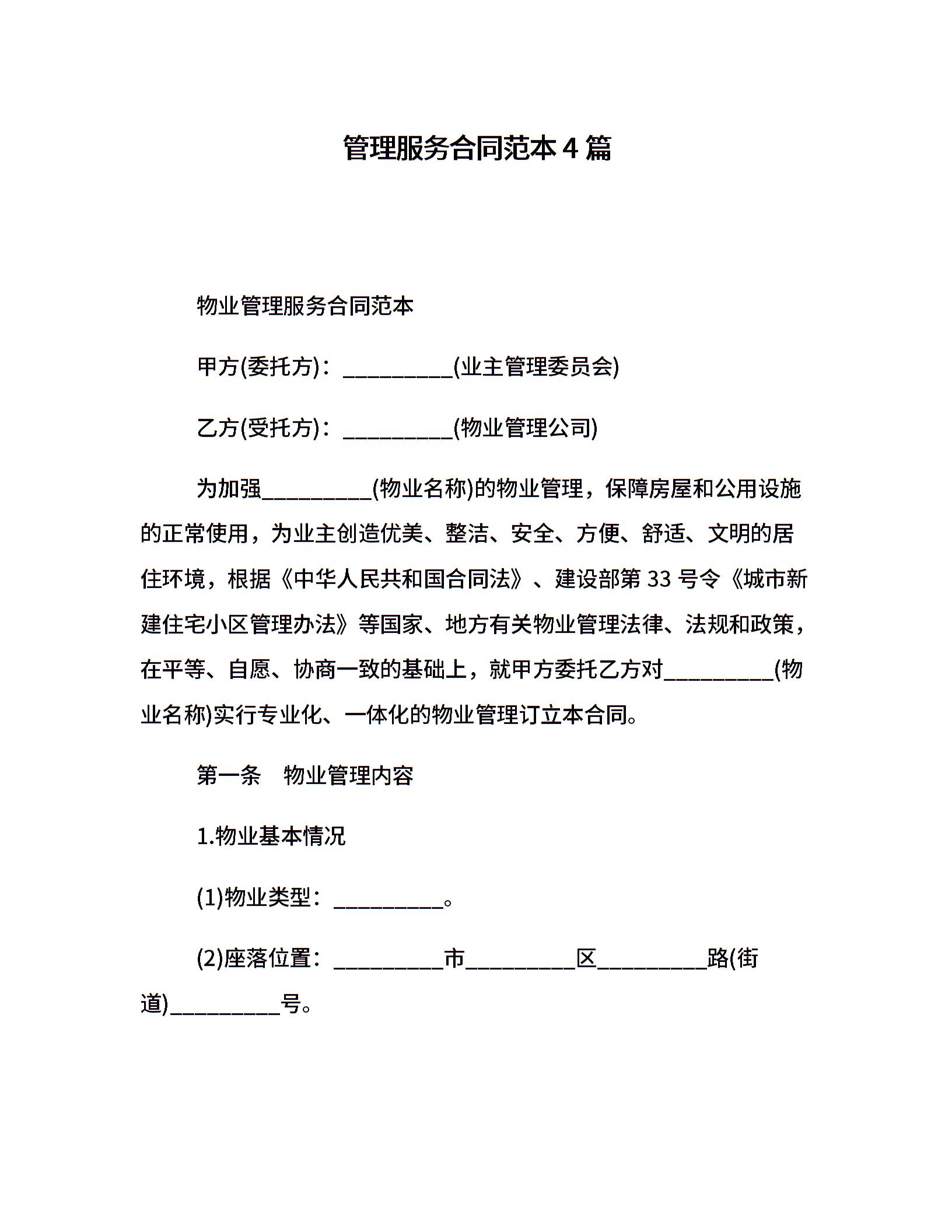 管理服务合同范本4篇