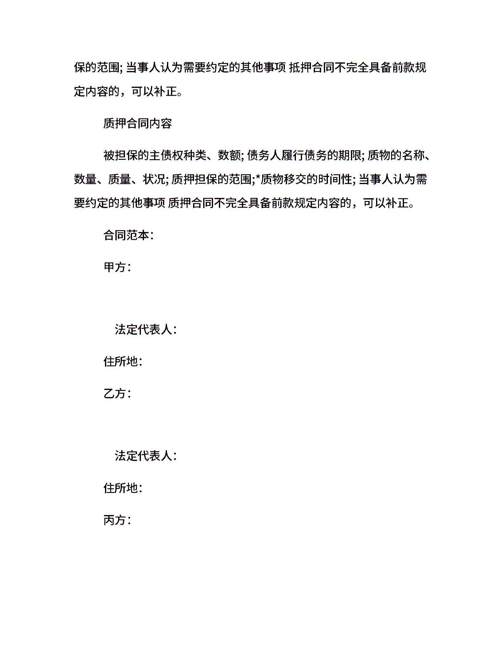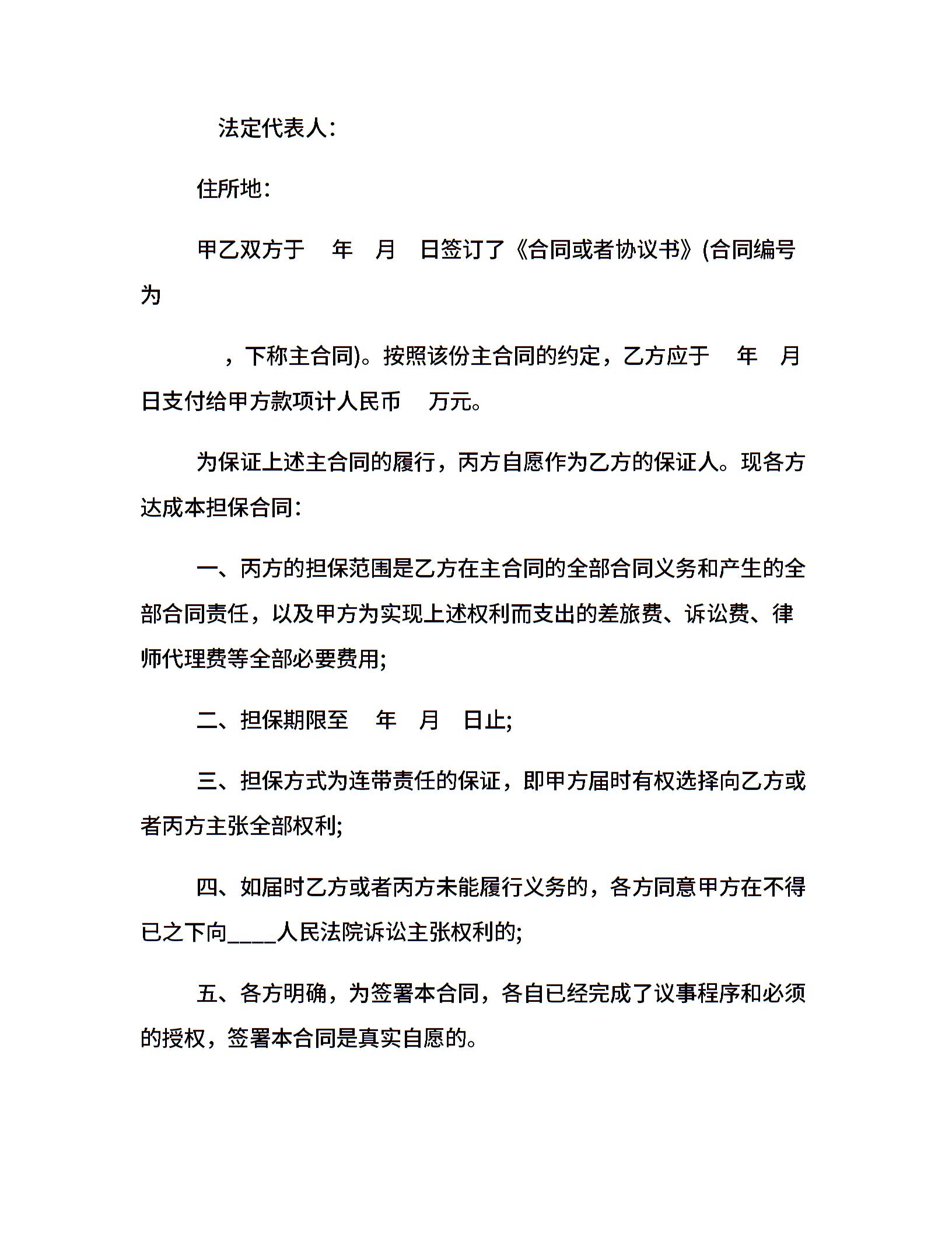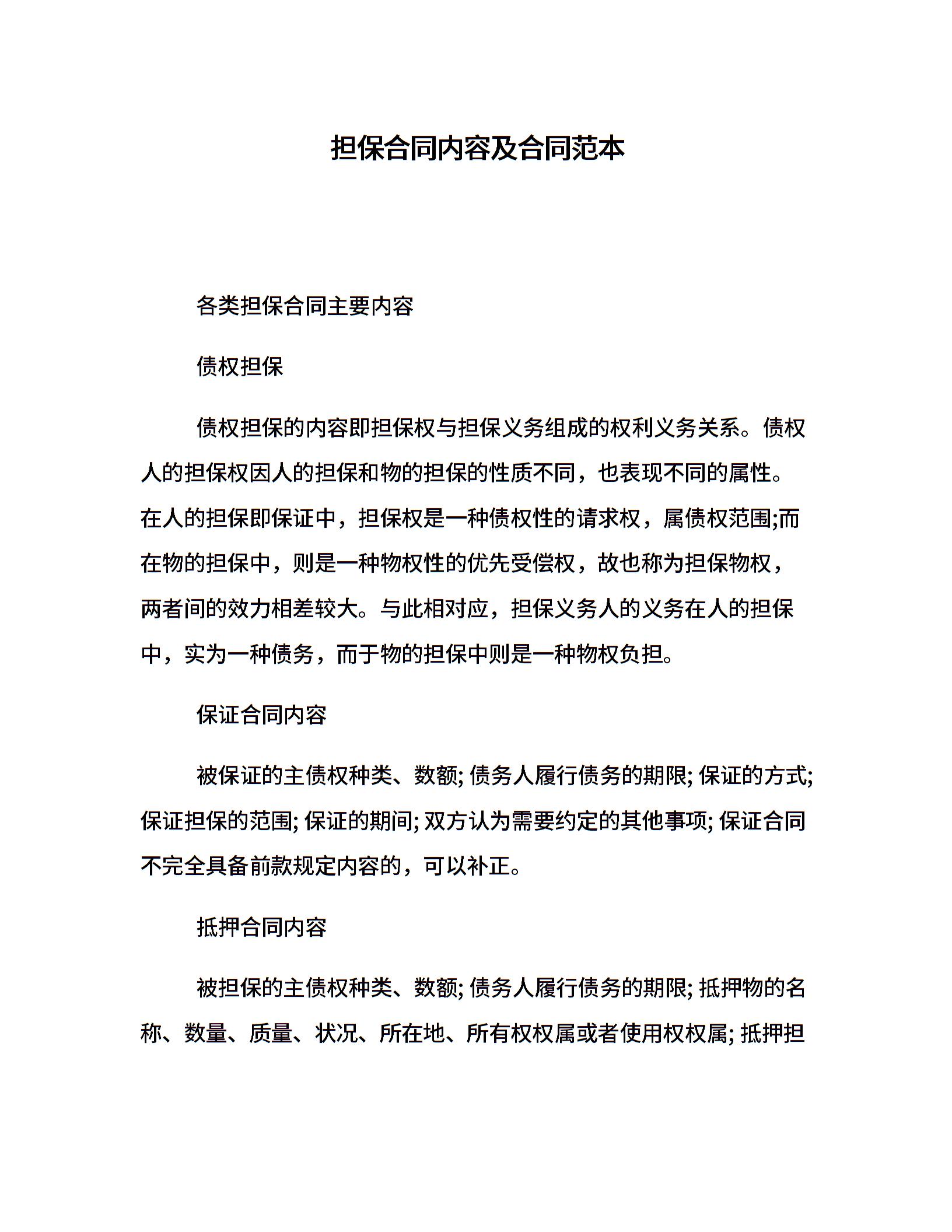 担保合同内容及合同范本