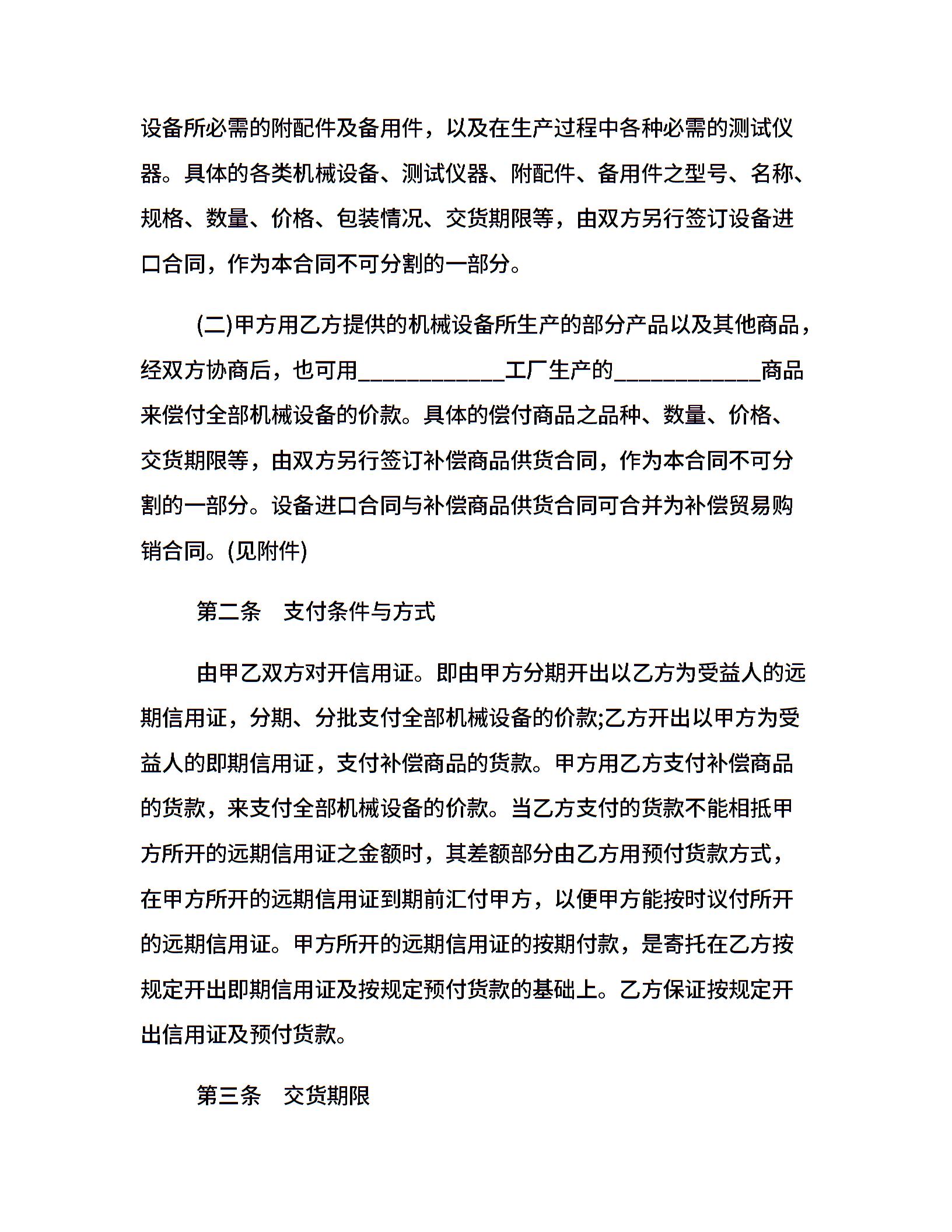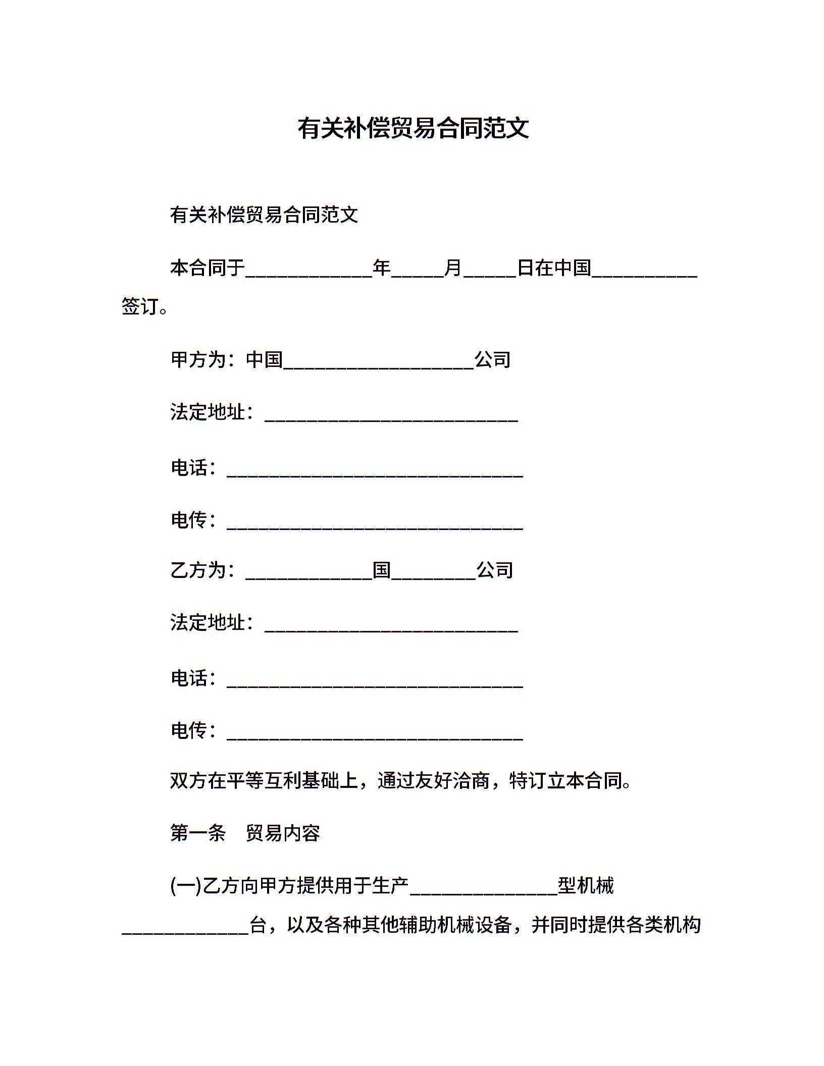 有关补偿贸易合同范文