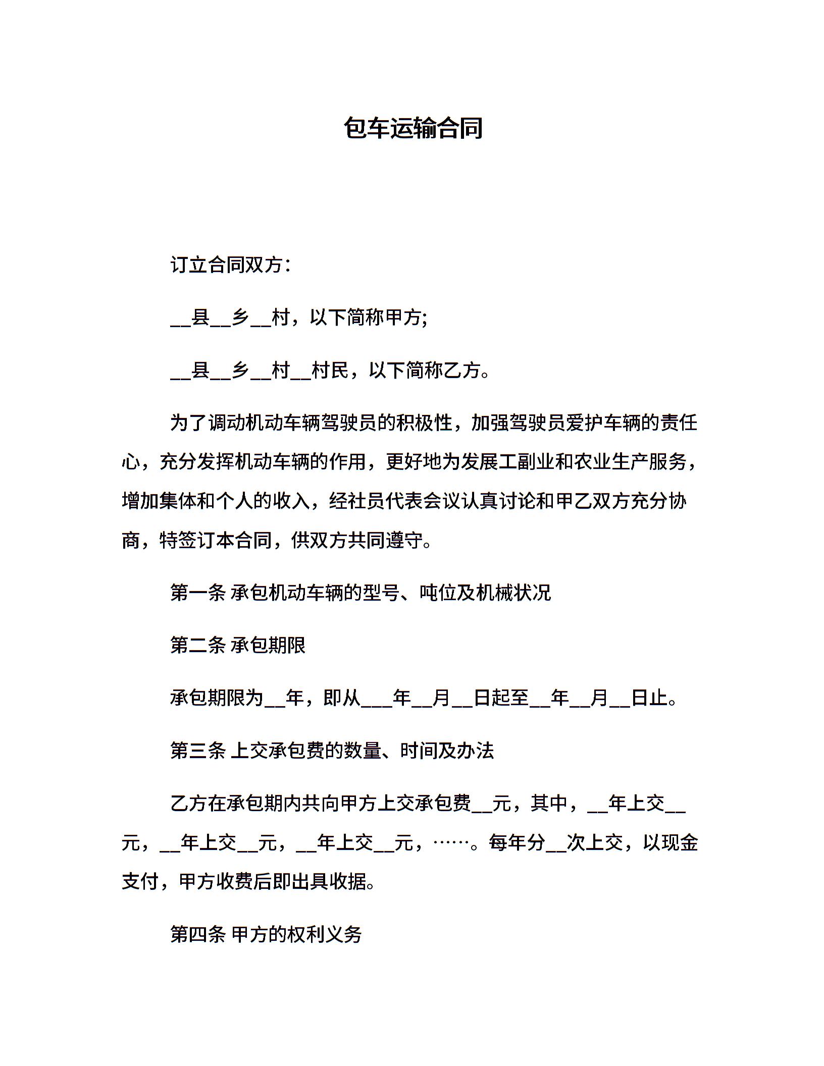 包车运输合同
