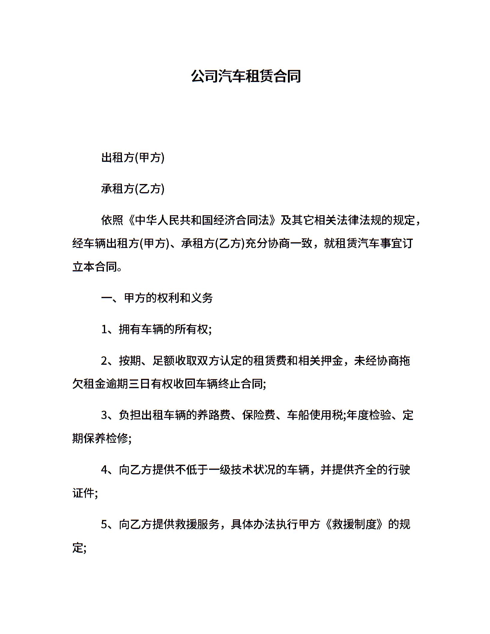 公司汽车租赁合同