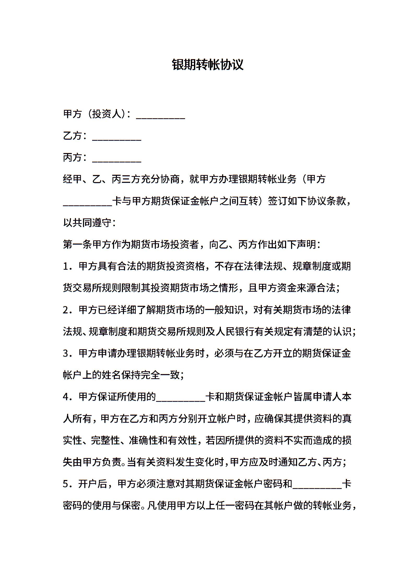 银期转帐协议