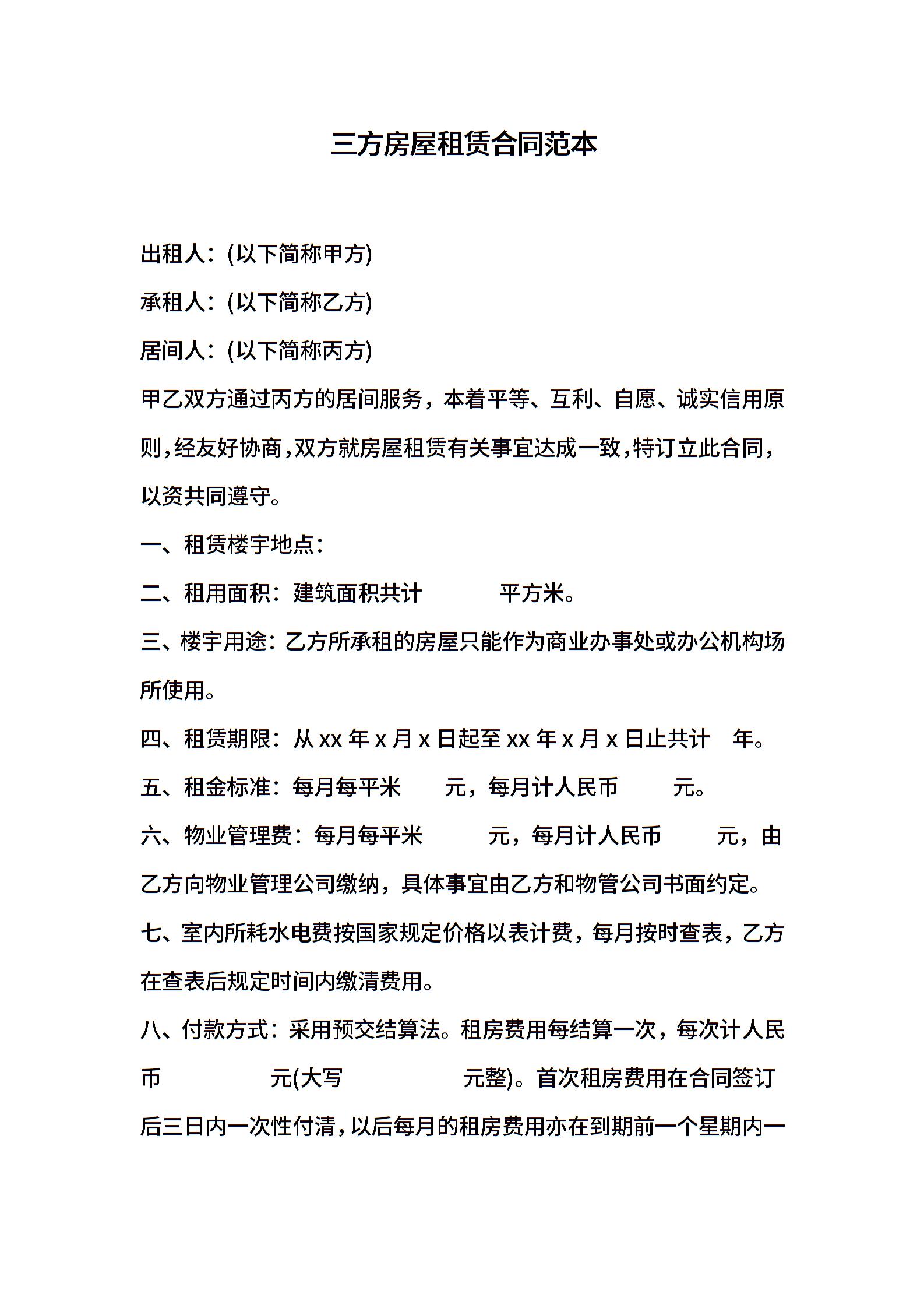 三方房屋租赁合同范本