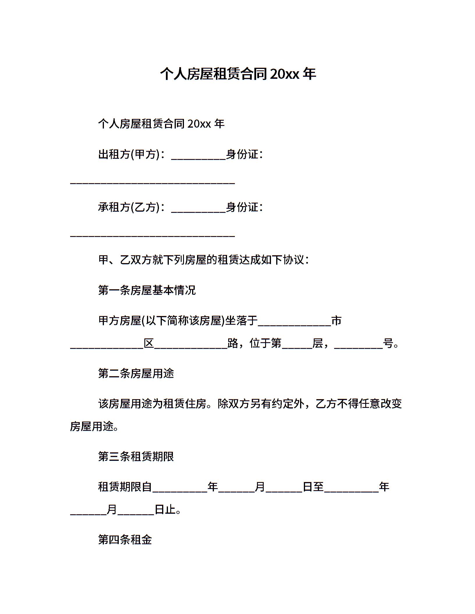 个人房屋租赁合同20xx年