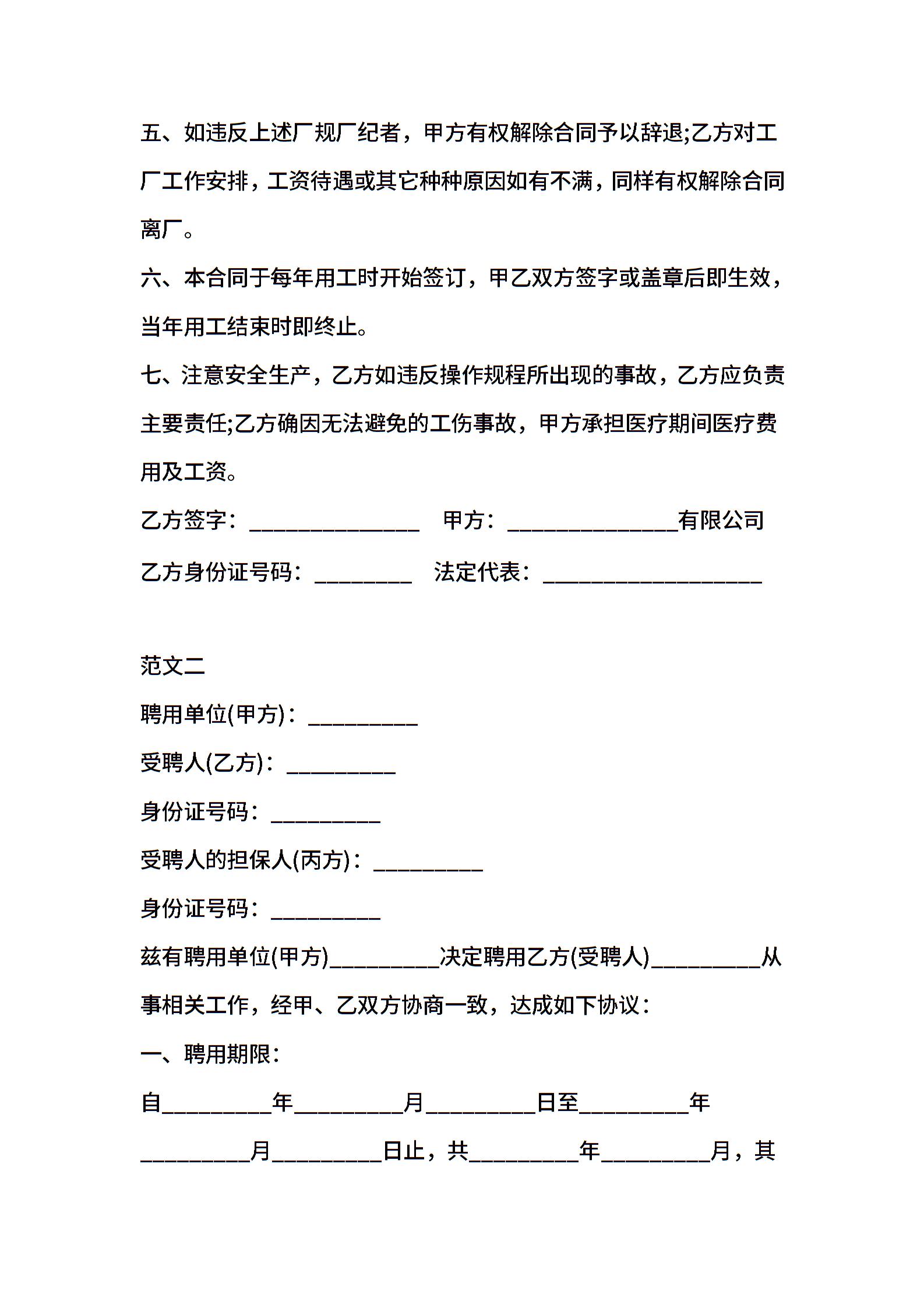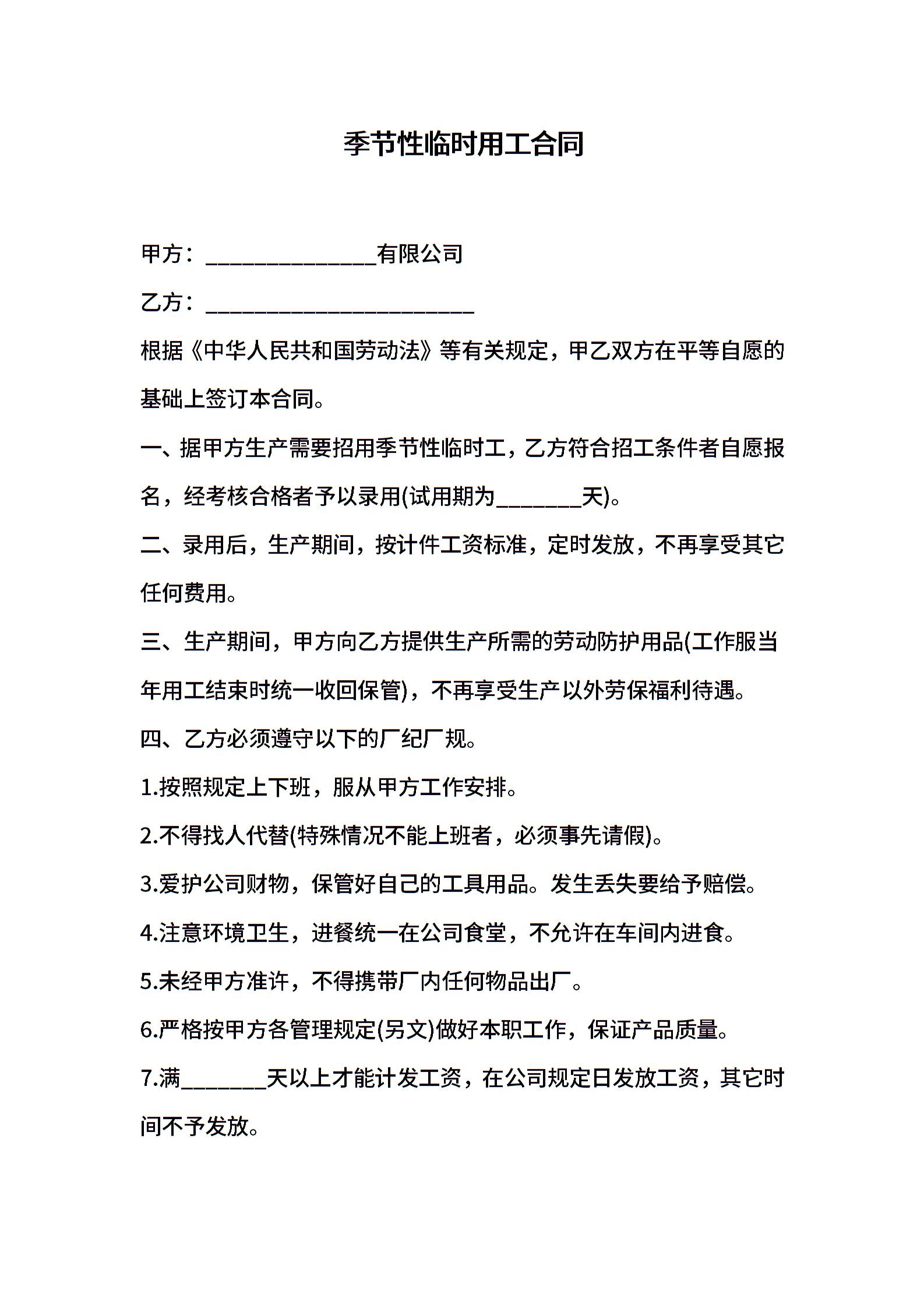 季节性临时用工合同 (2)
