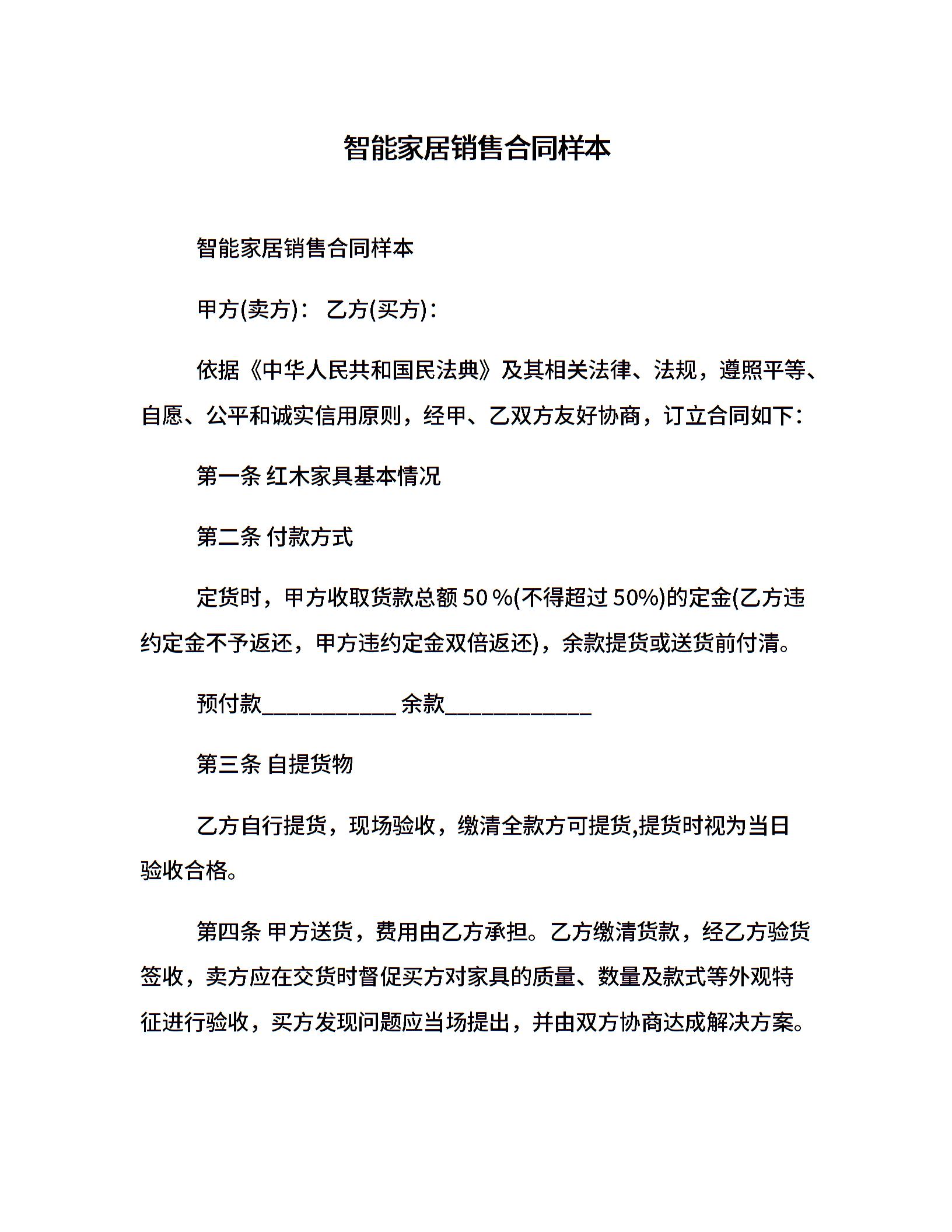 智能家居销售合同样本