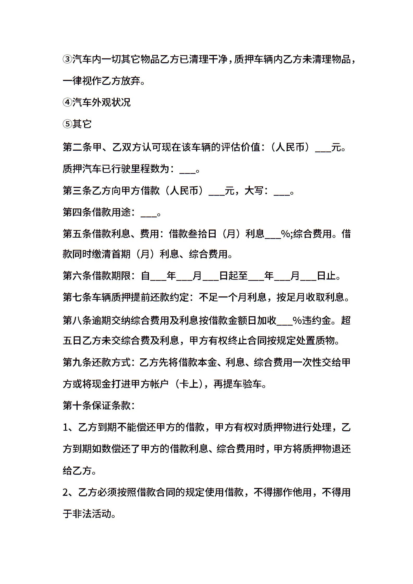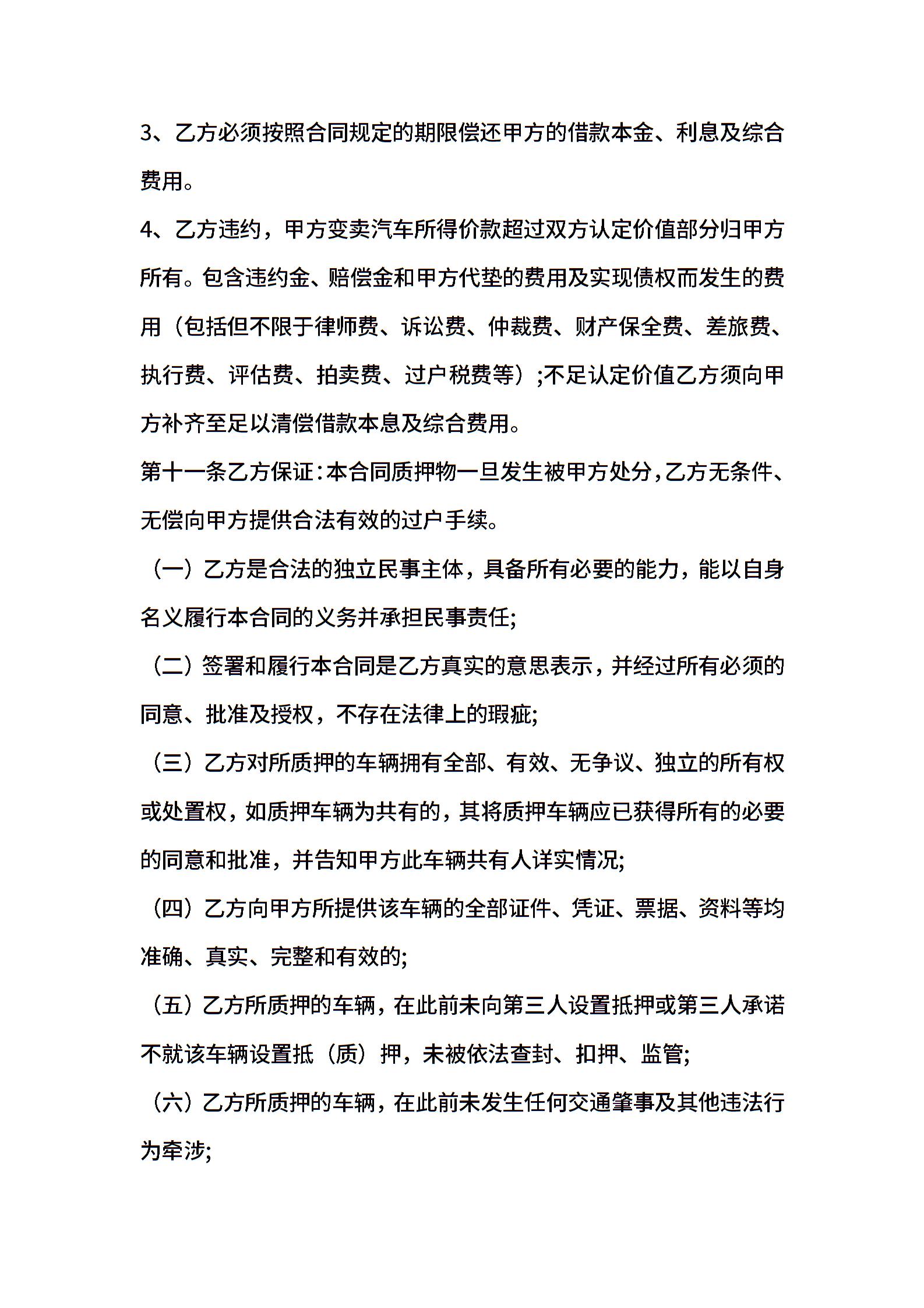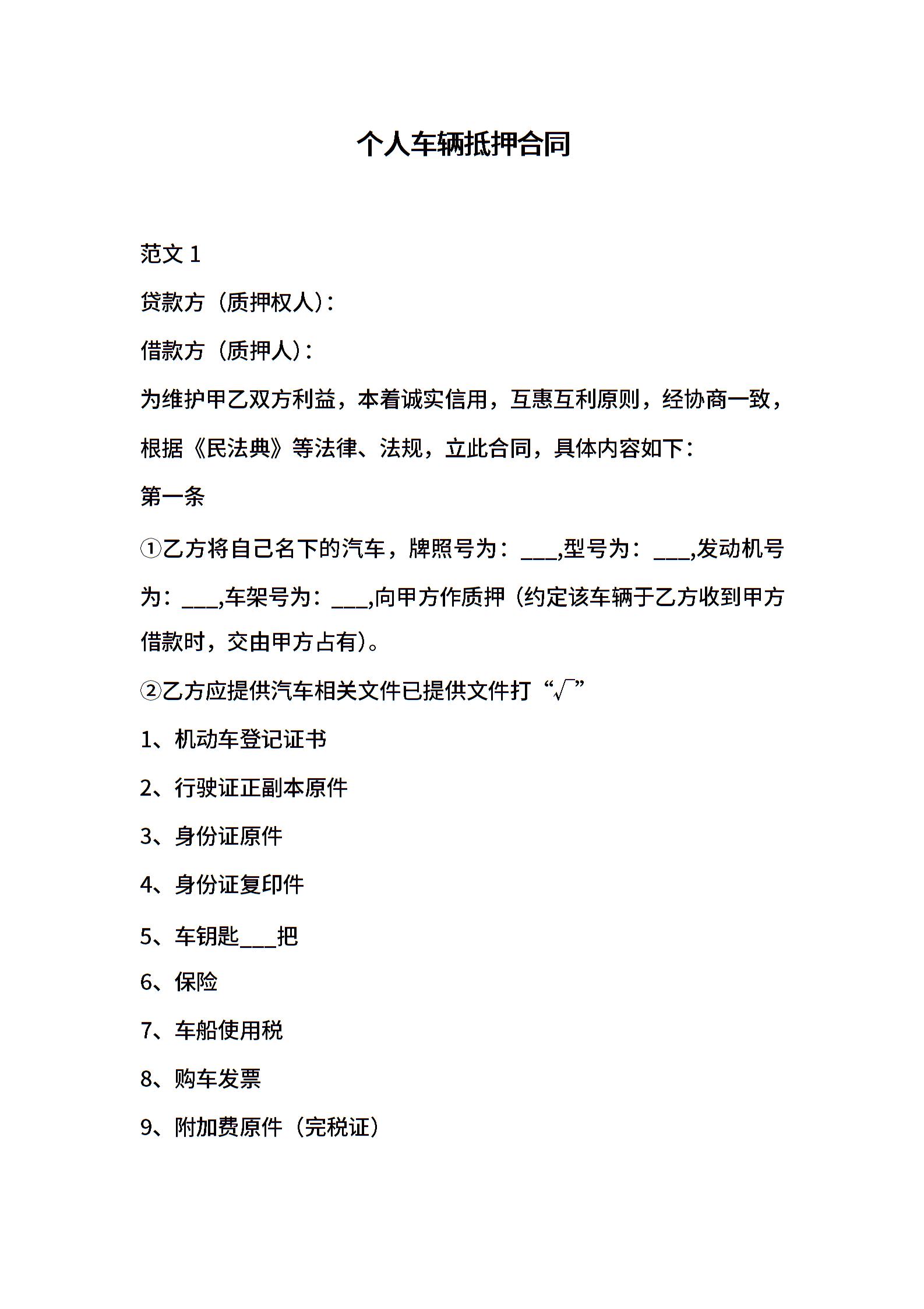 个人车辆抵押合同