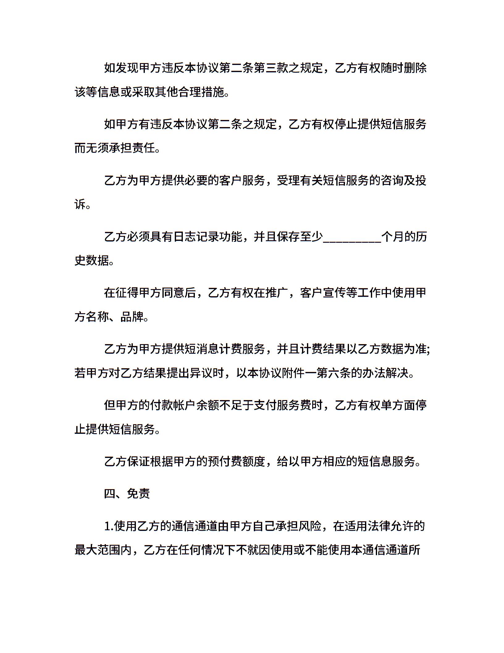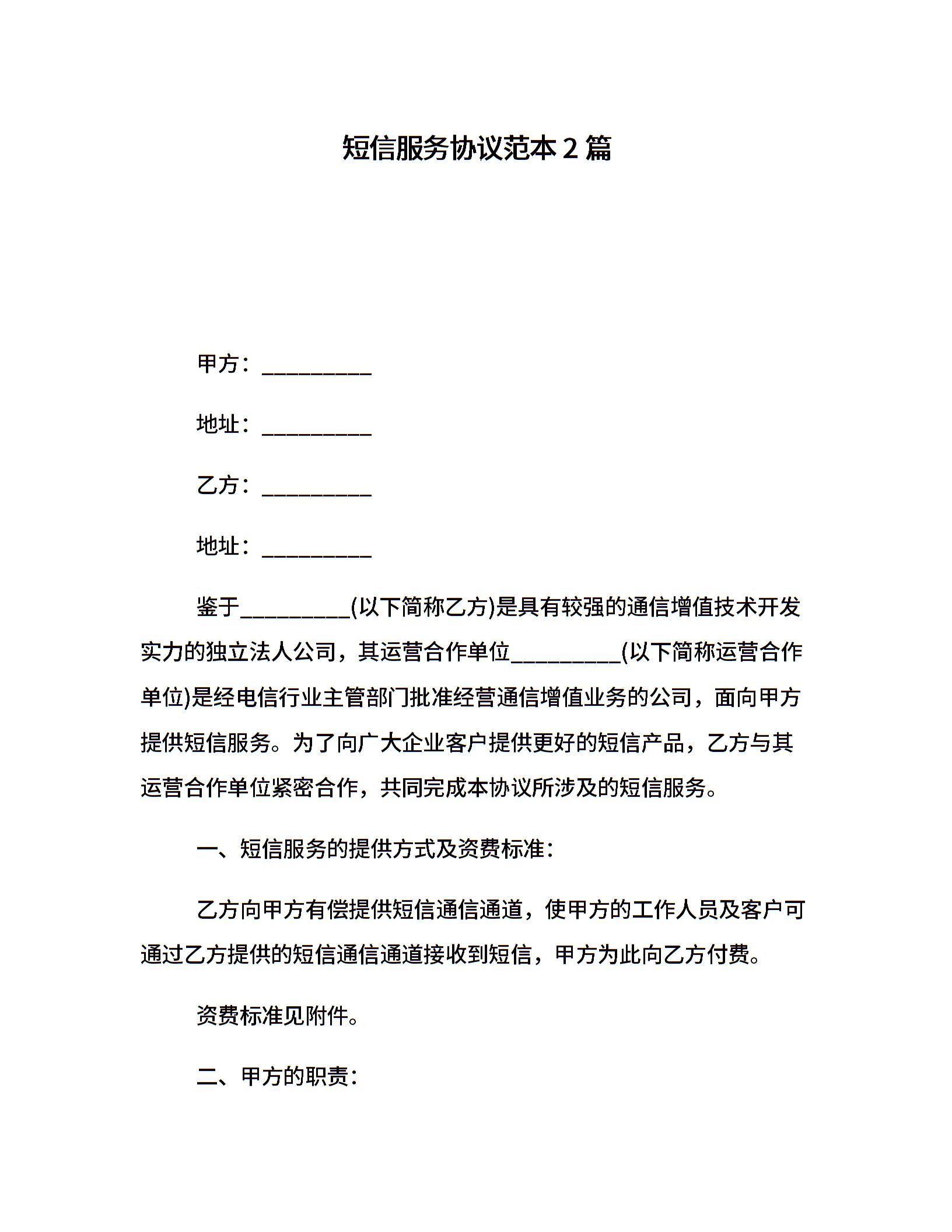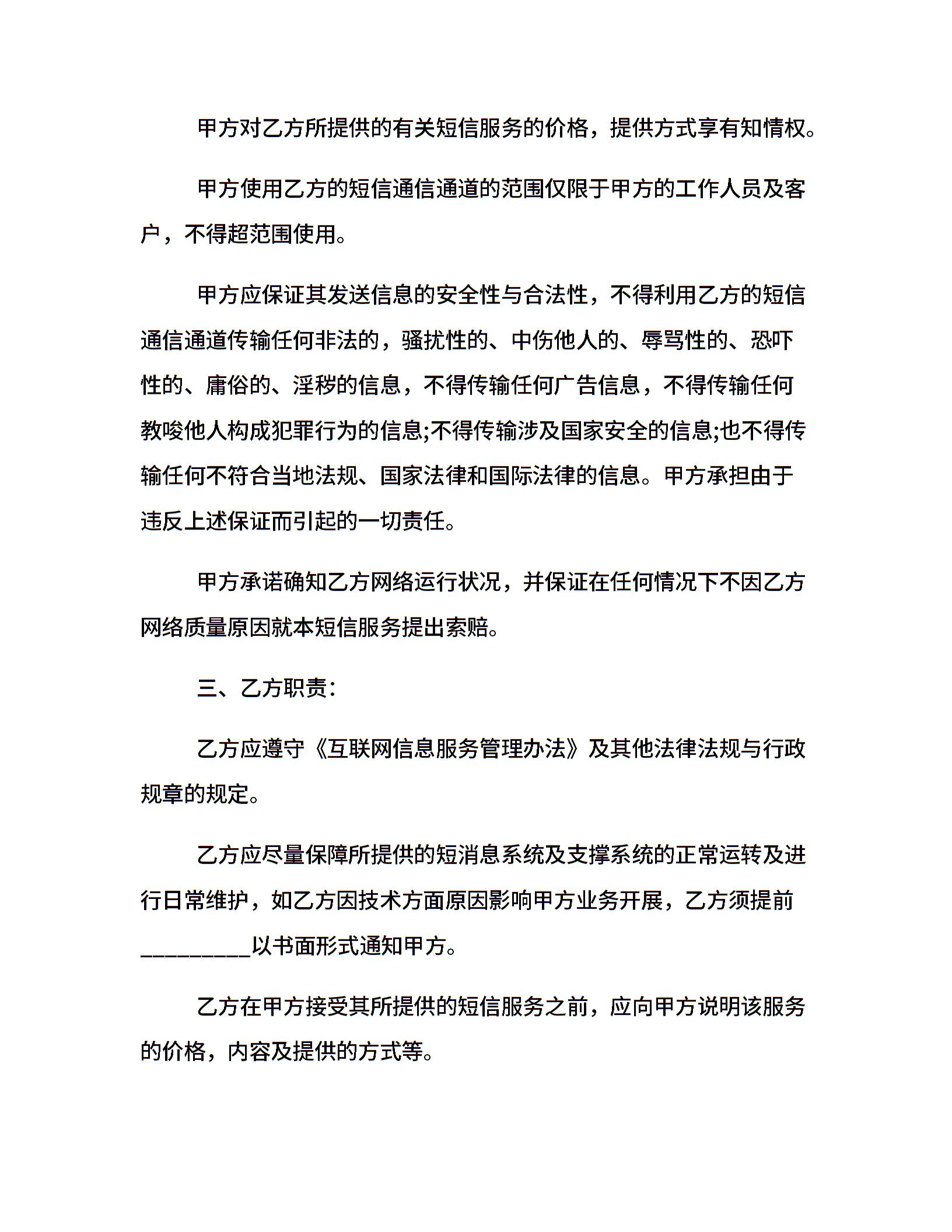 短信服务协议范本2篇