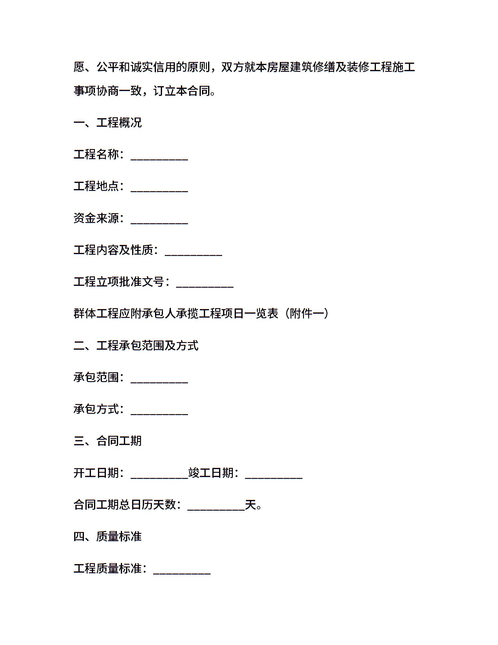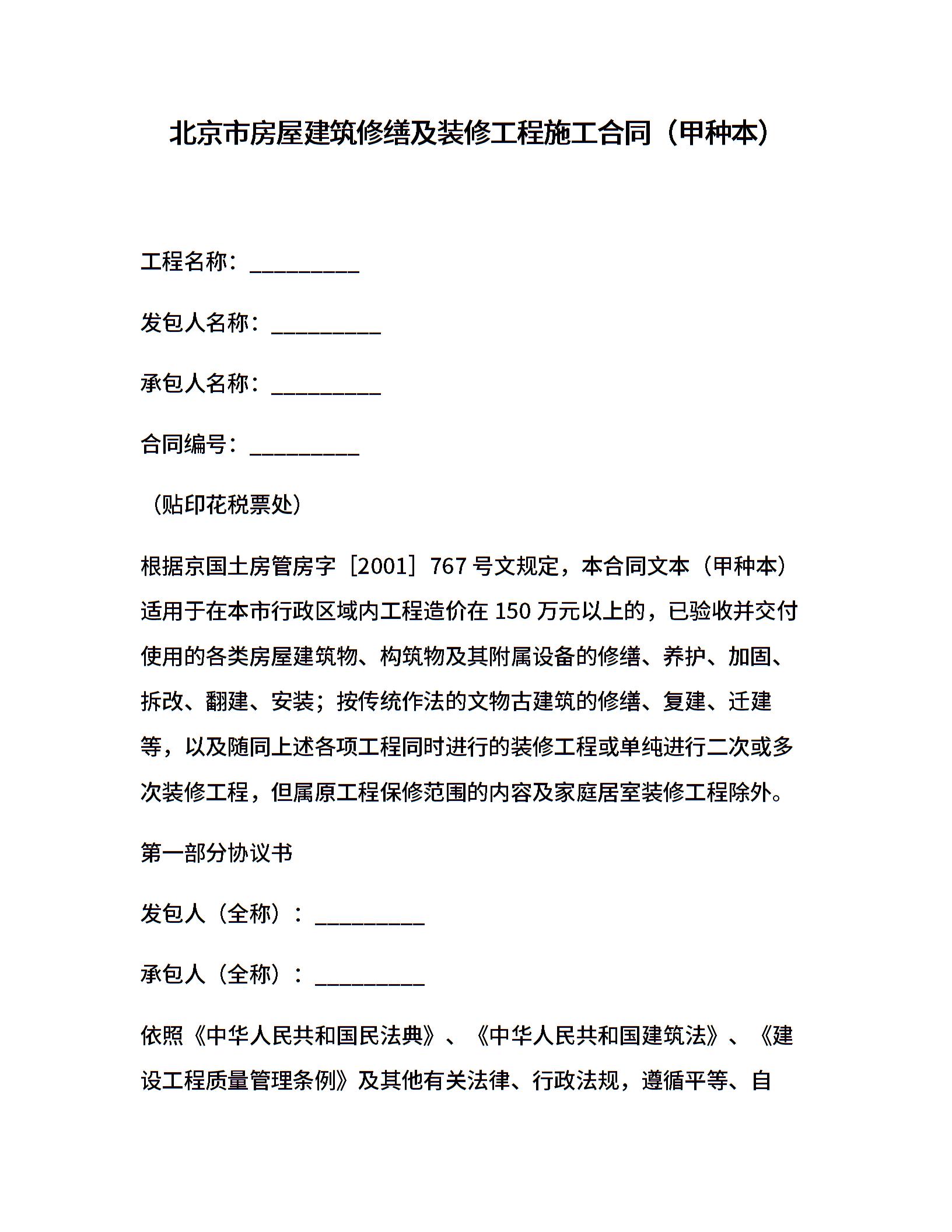 北京市房屋建筑修缮及装修工程施工合同(甲种本)
