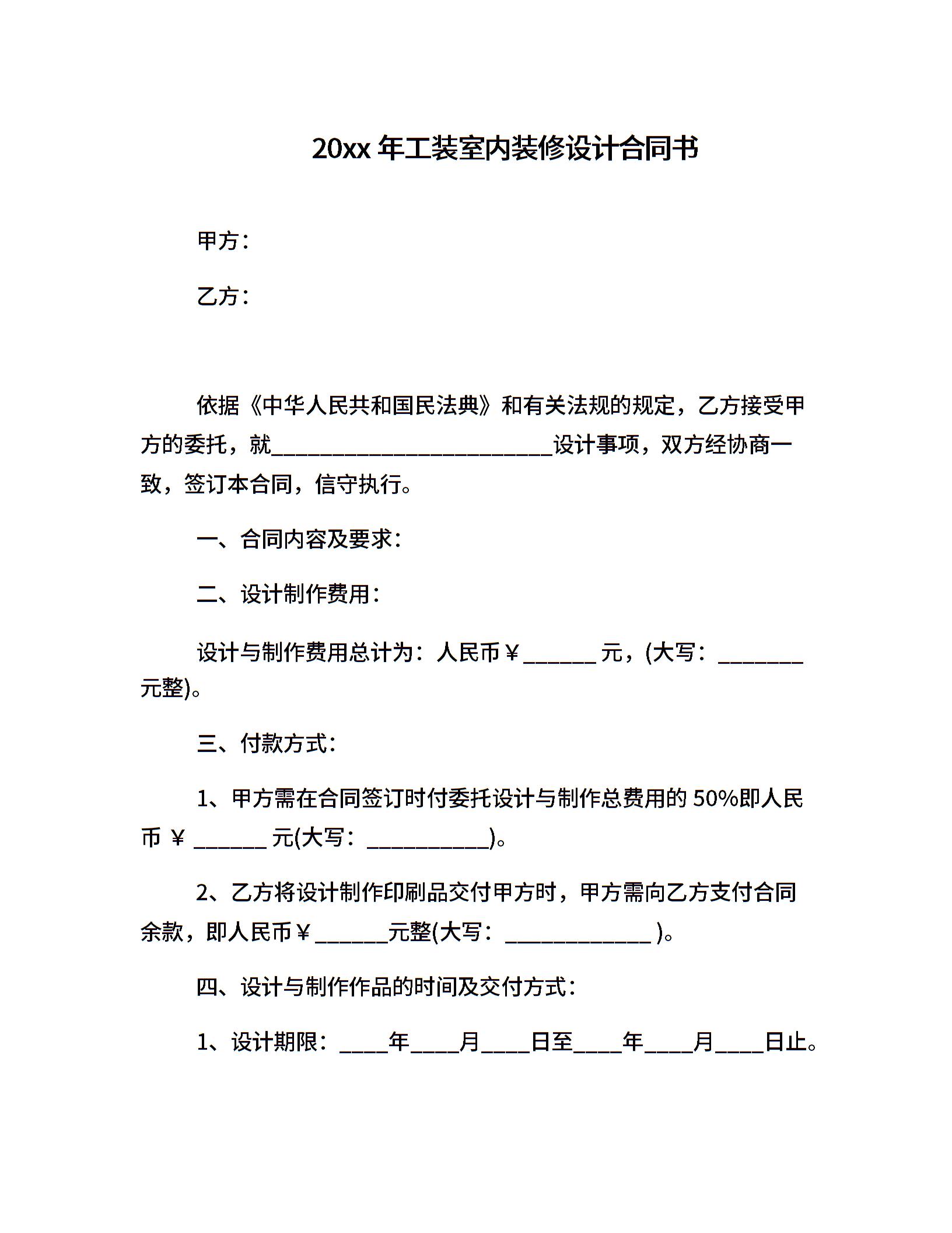 20xx年工装室内装修设计合同书