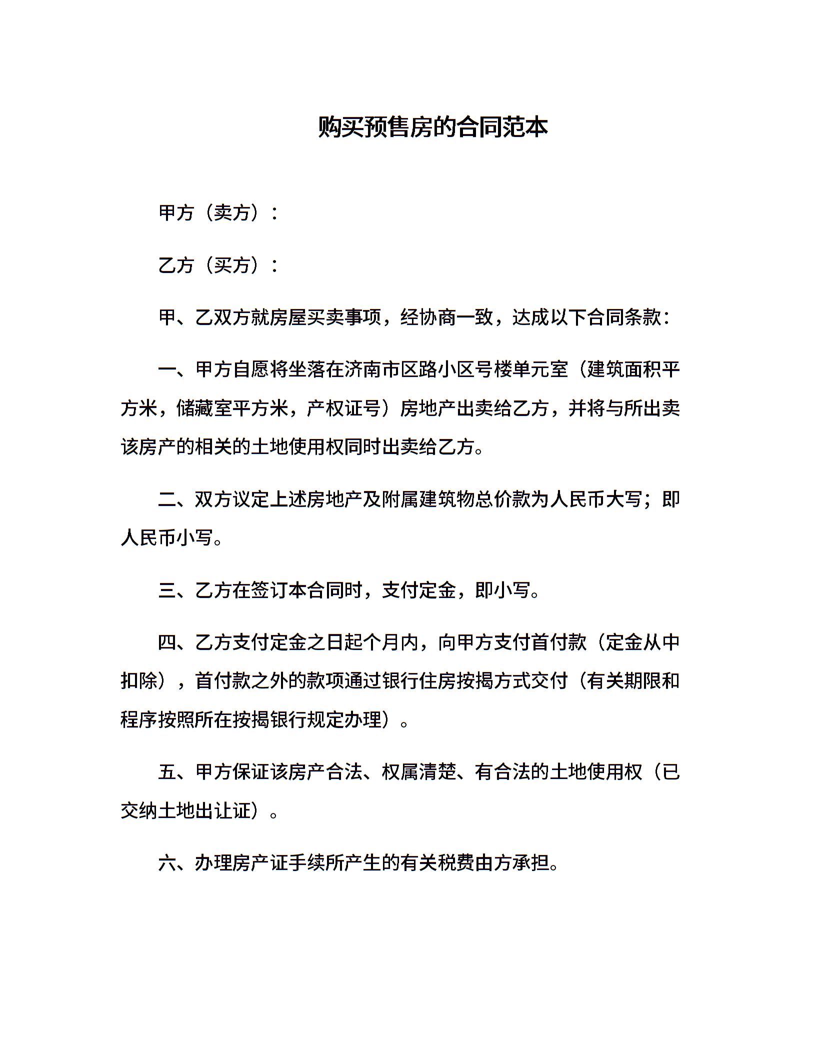 购买预售房的合同范本(1)
