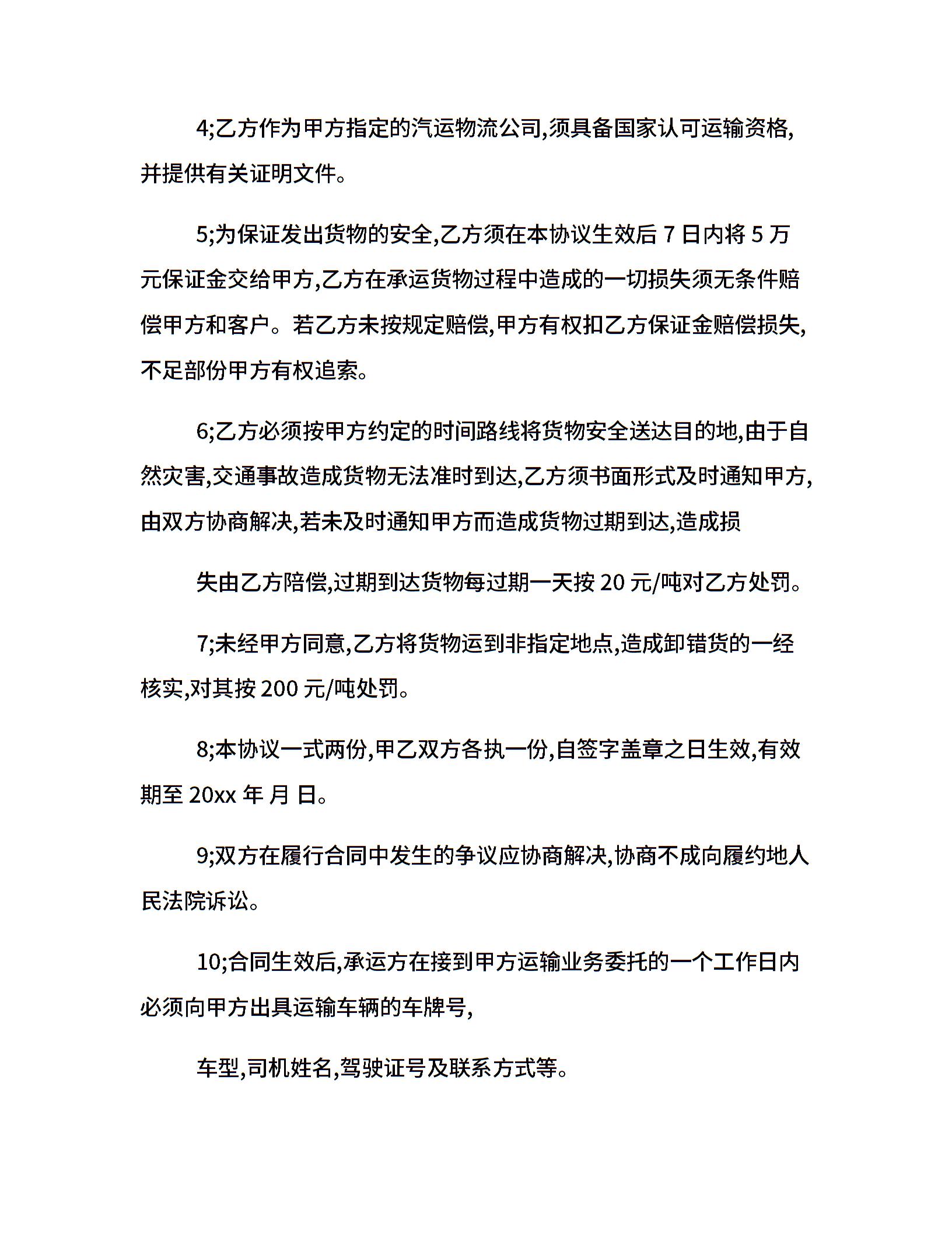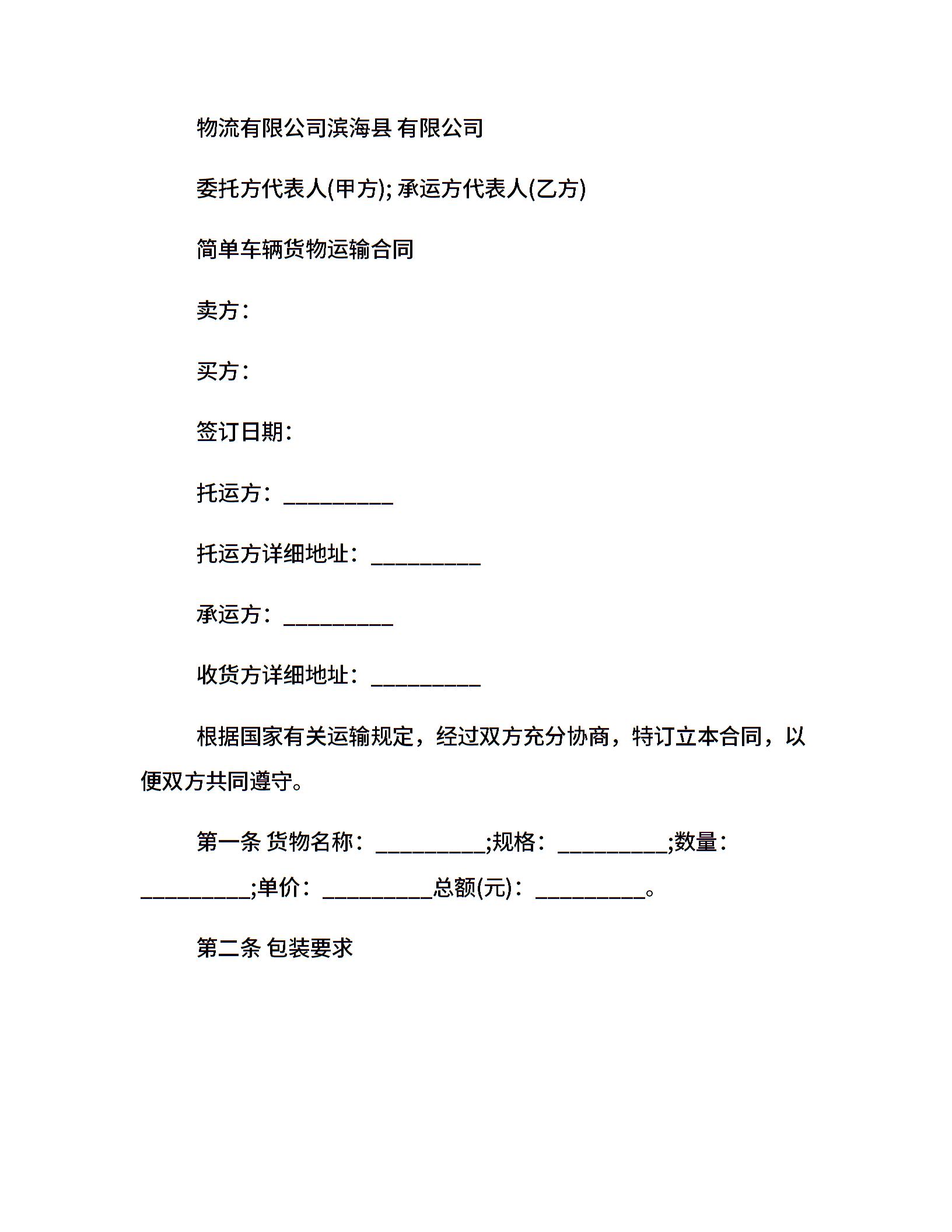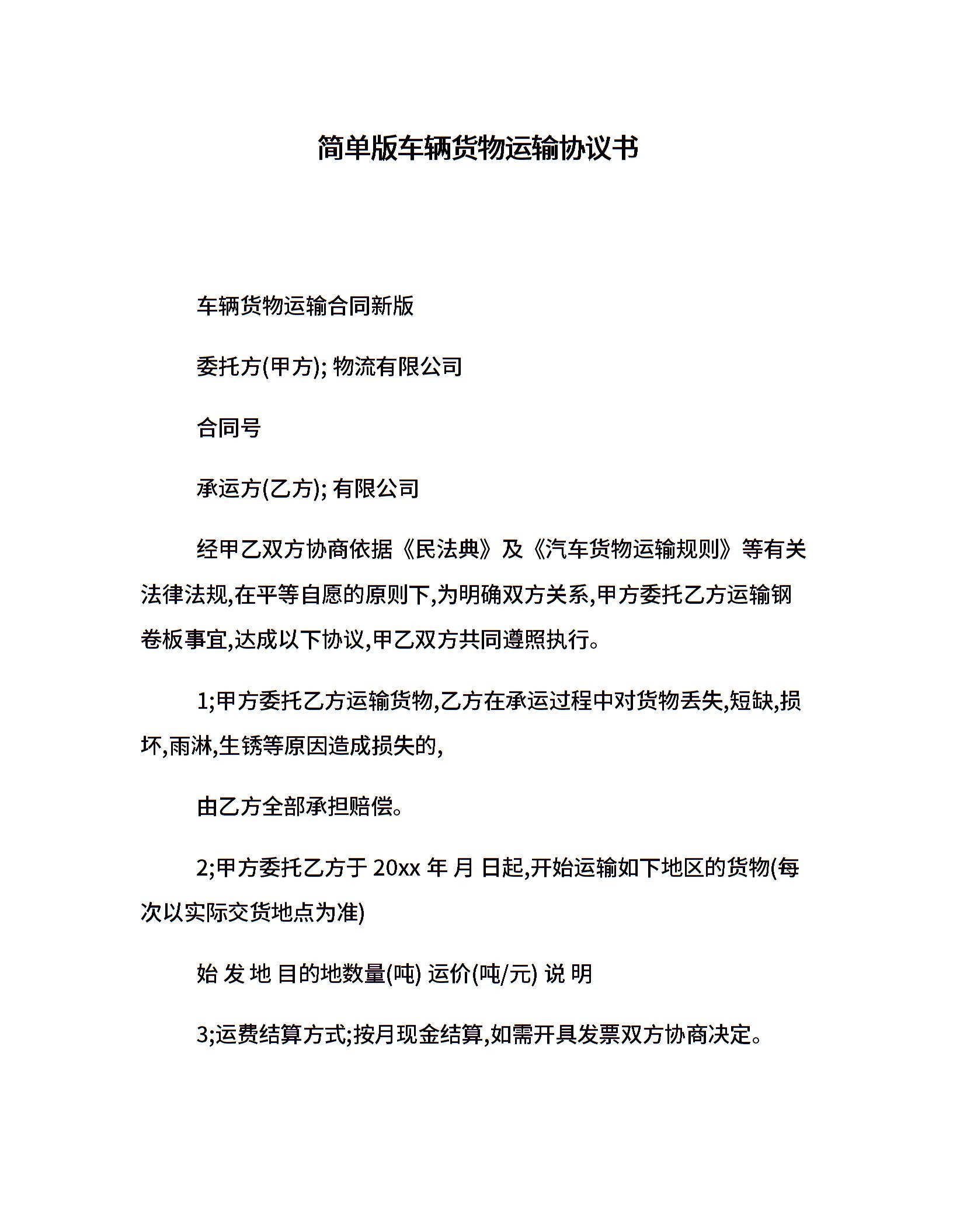 简单版车辆货物运输协议书
