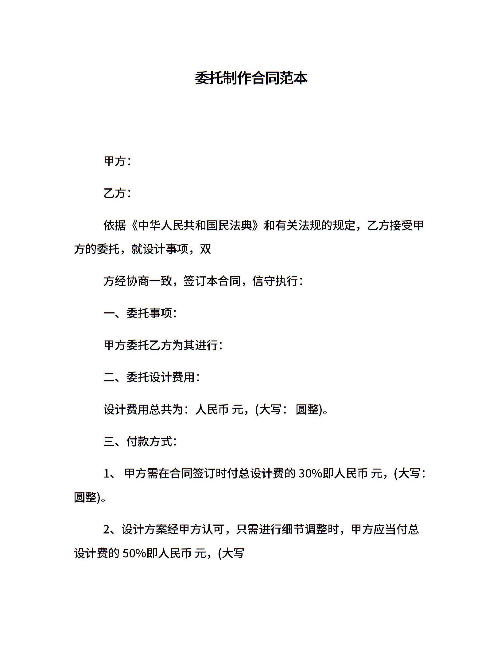 委托制作合同范本