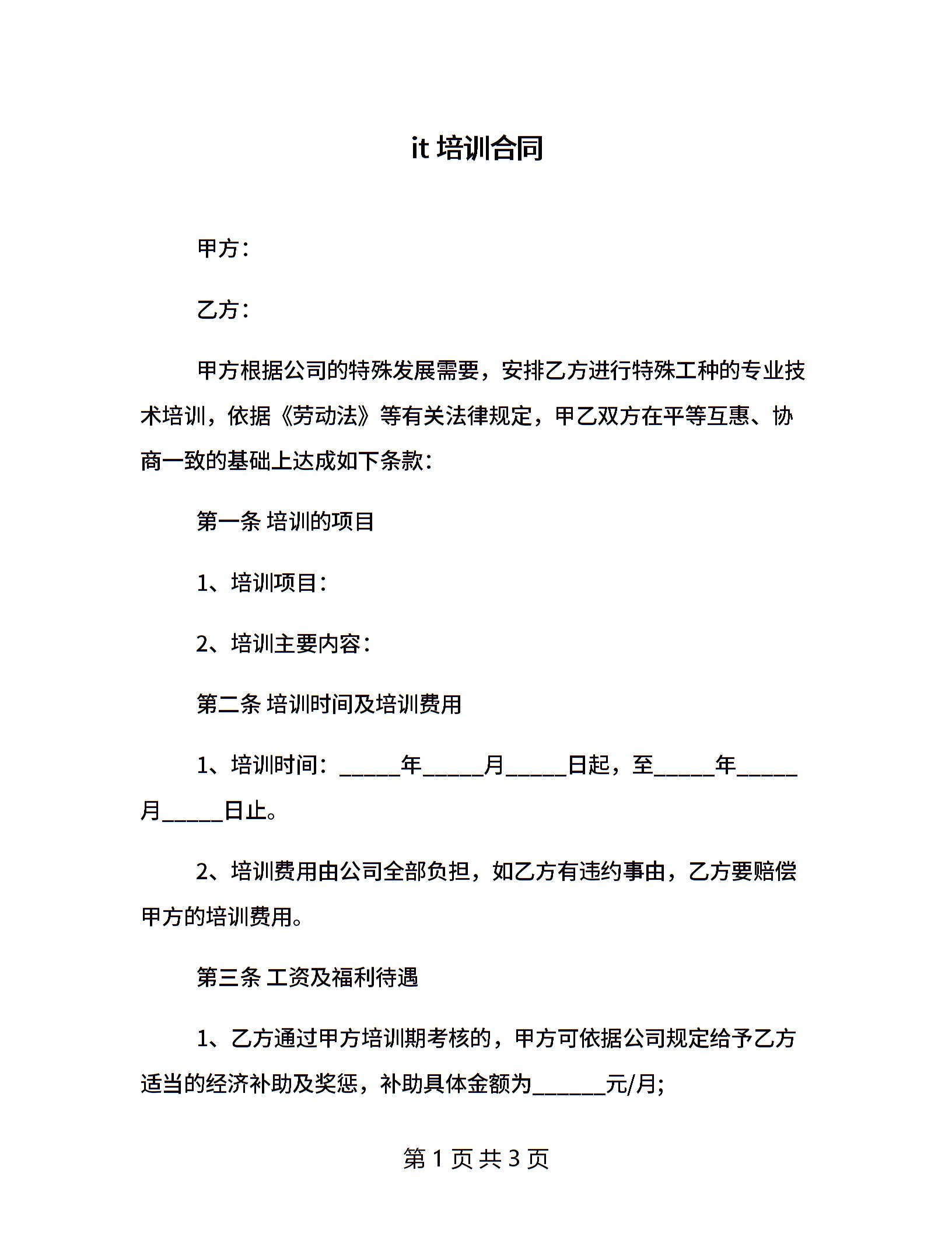 it培训合同