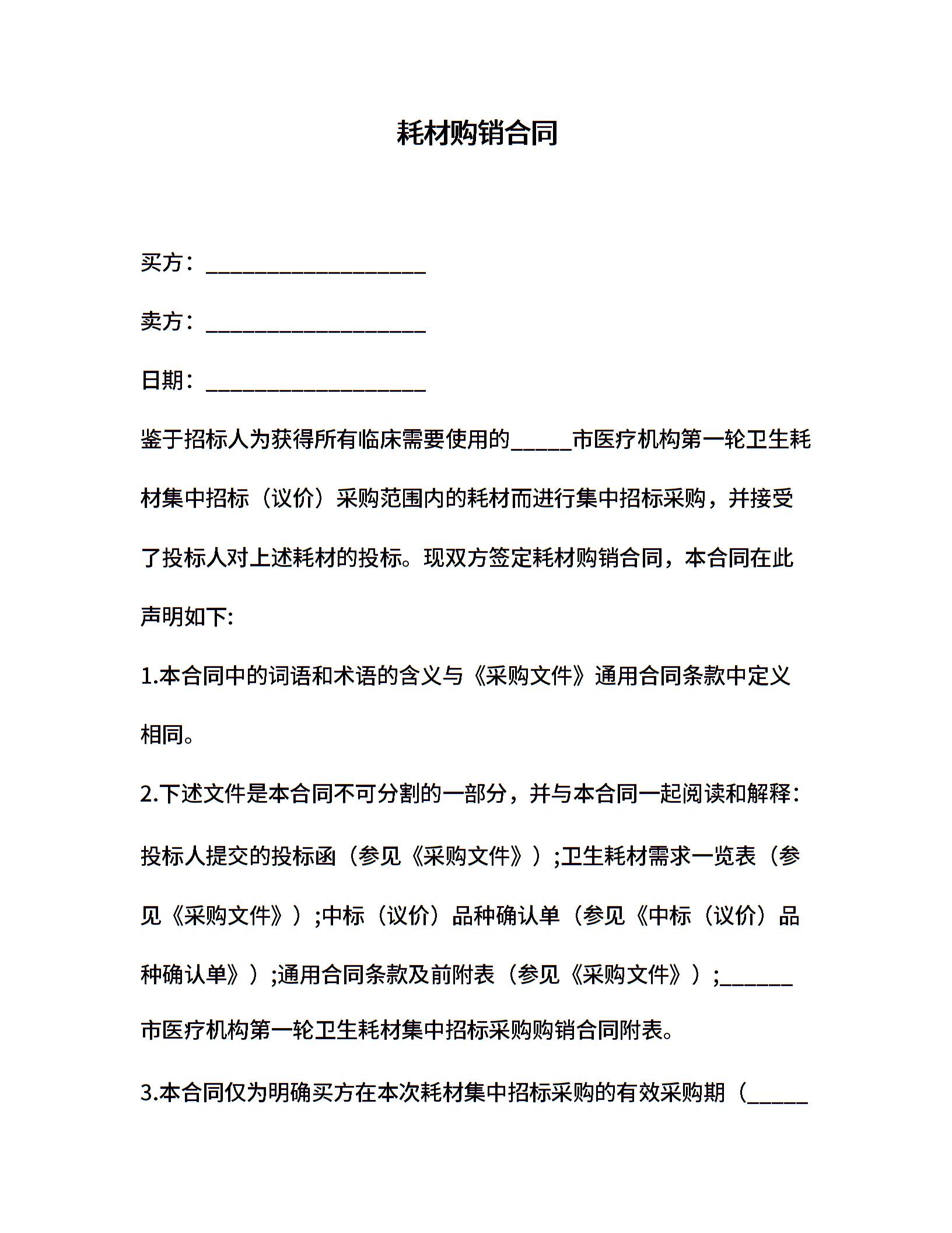耗材购销合同