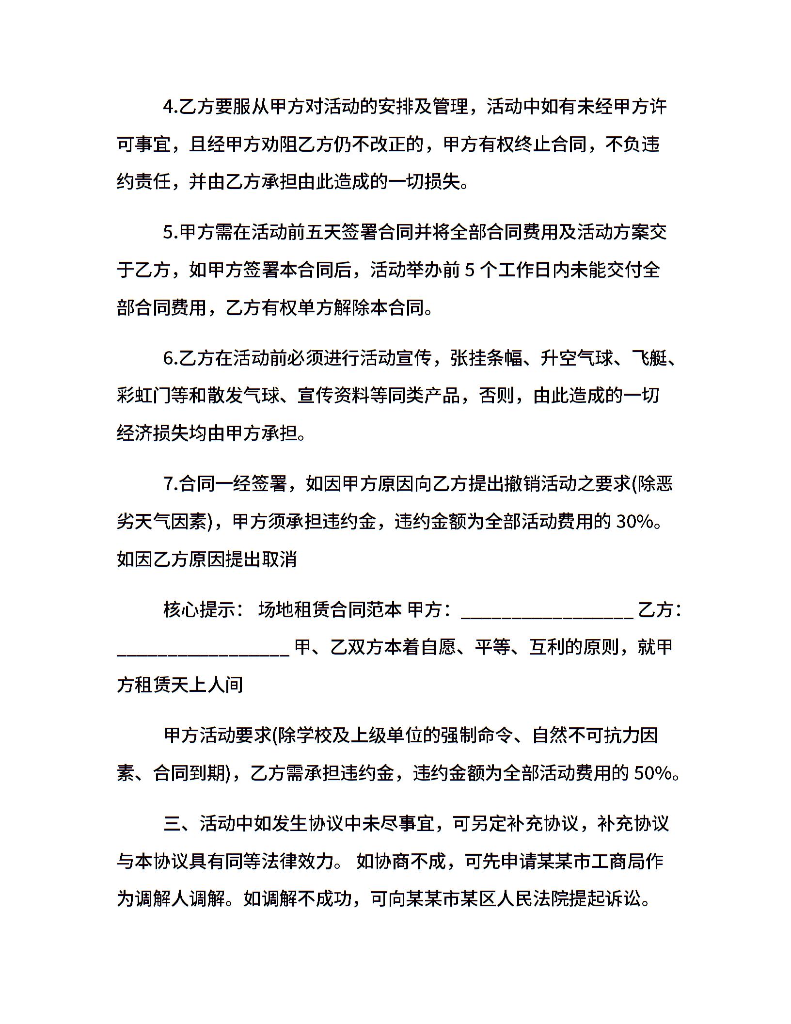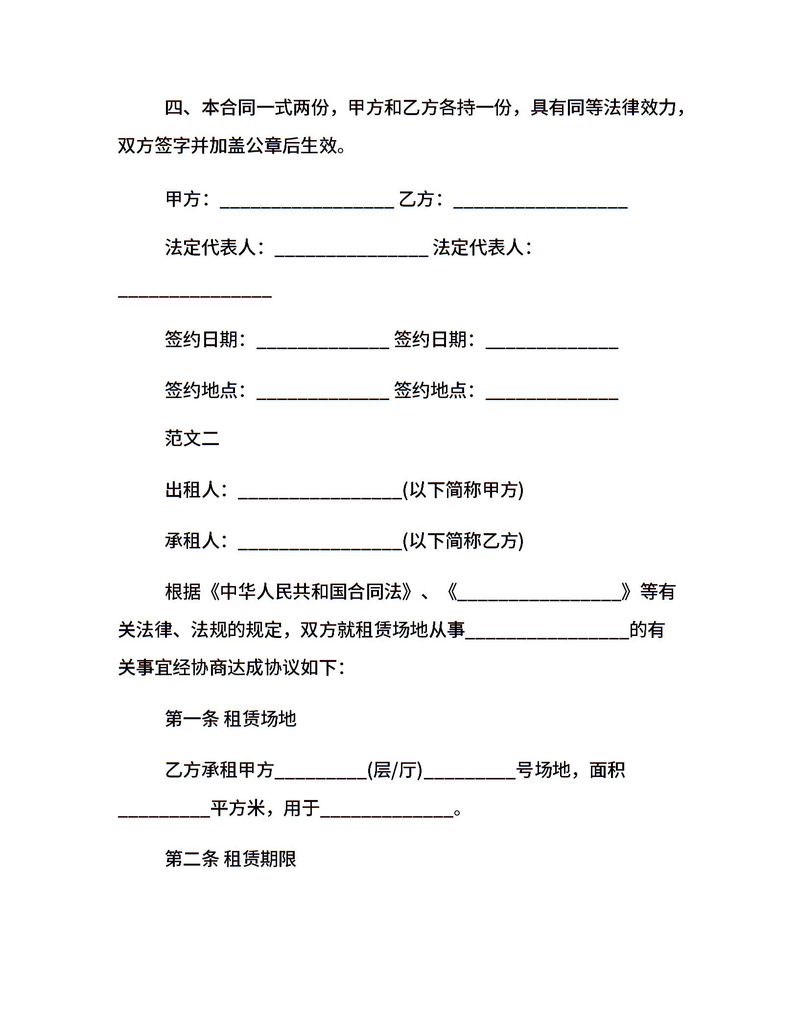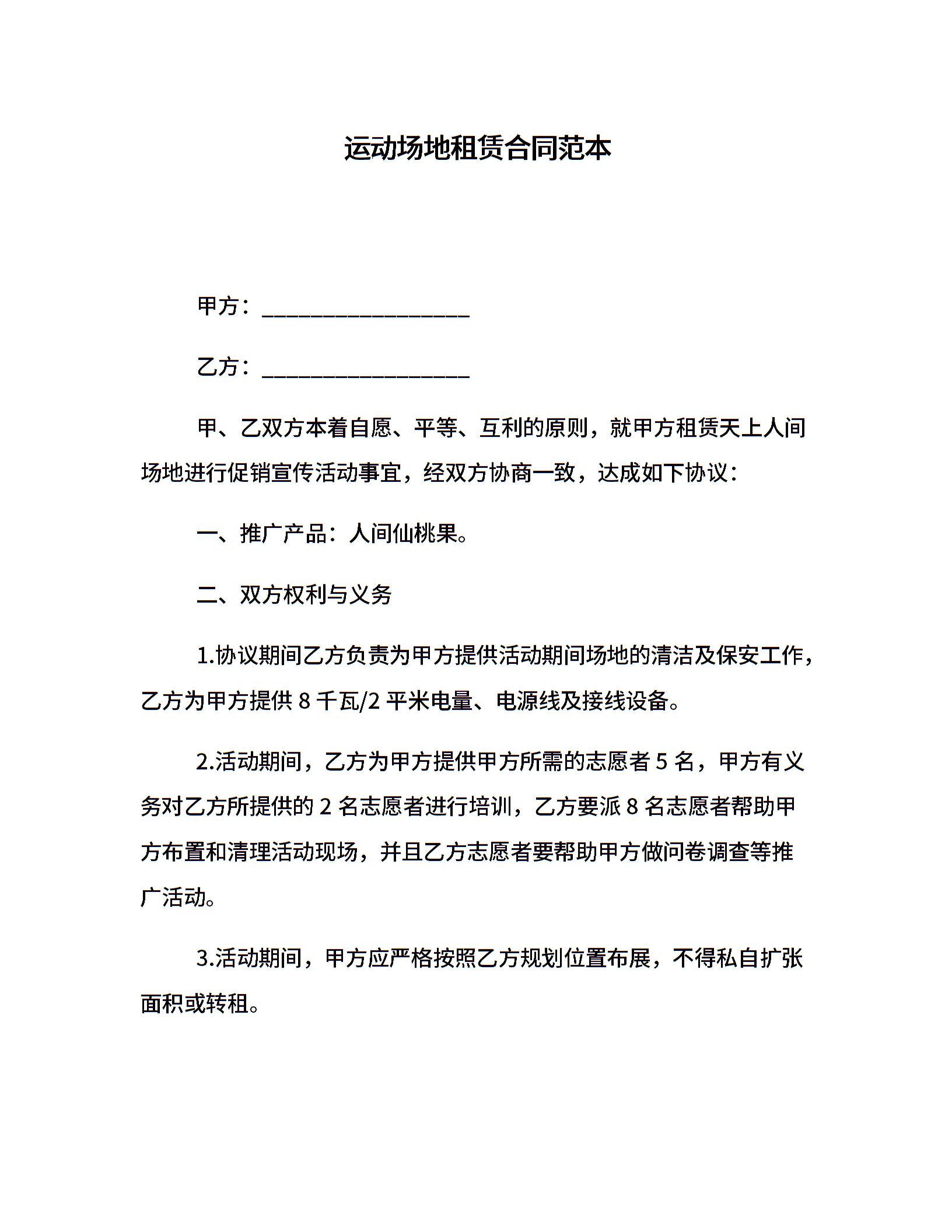 运动场地租赁合同范本