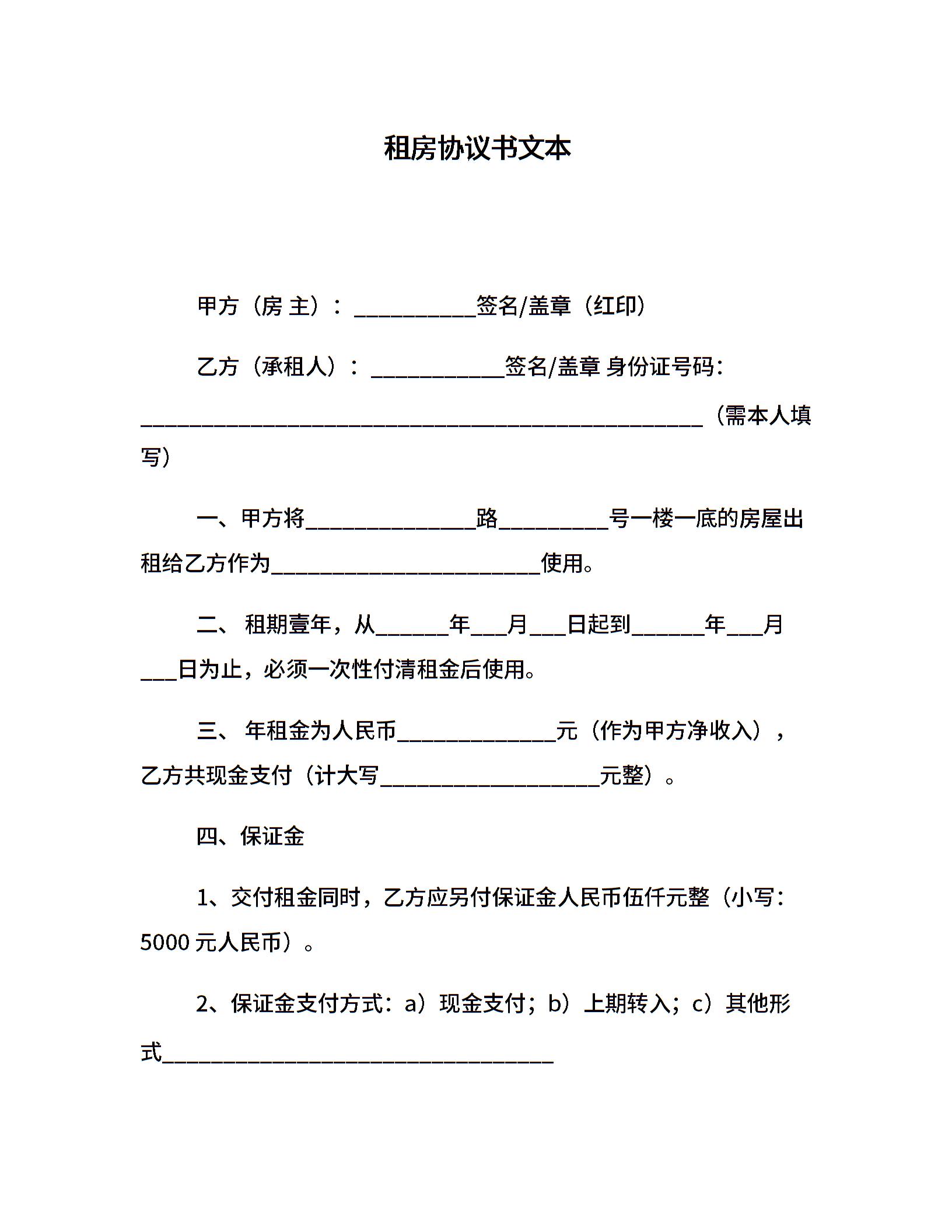 租房协议书文本