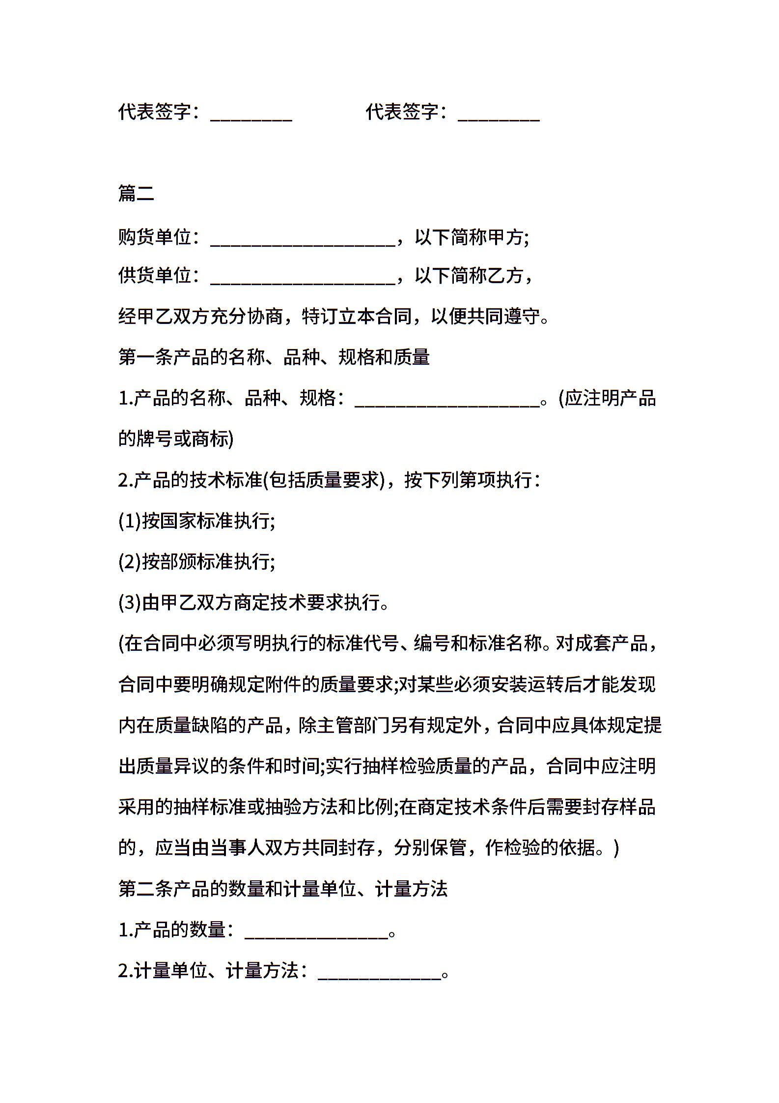 • 分类 购销合同