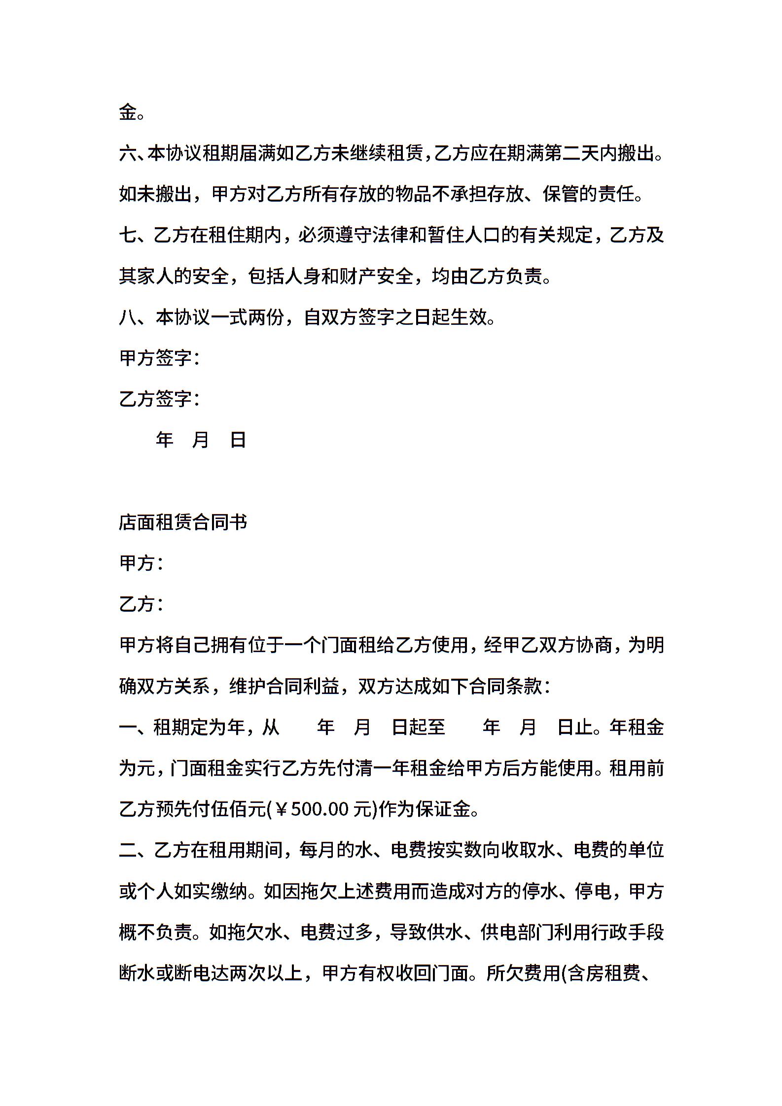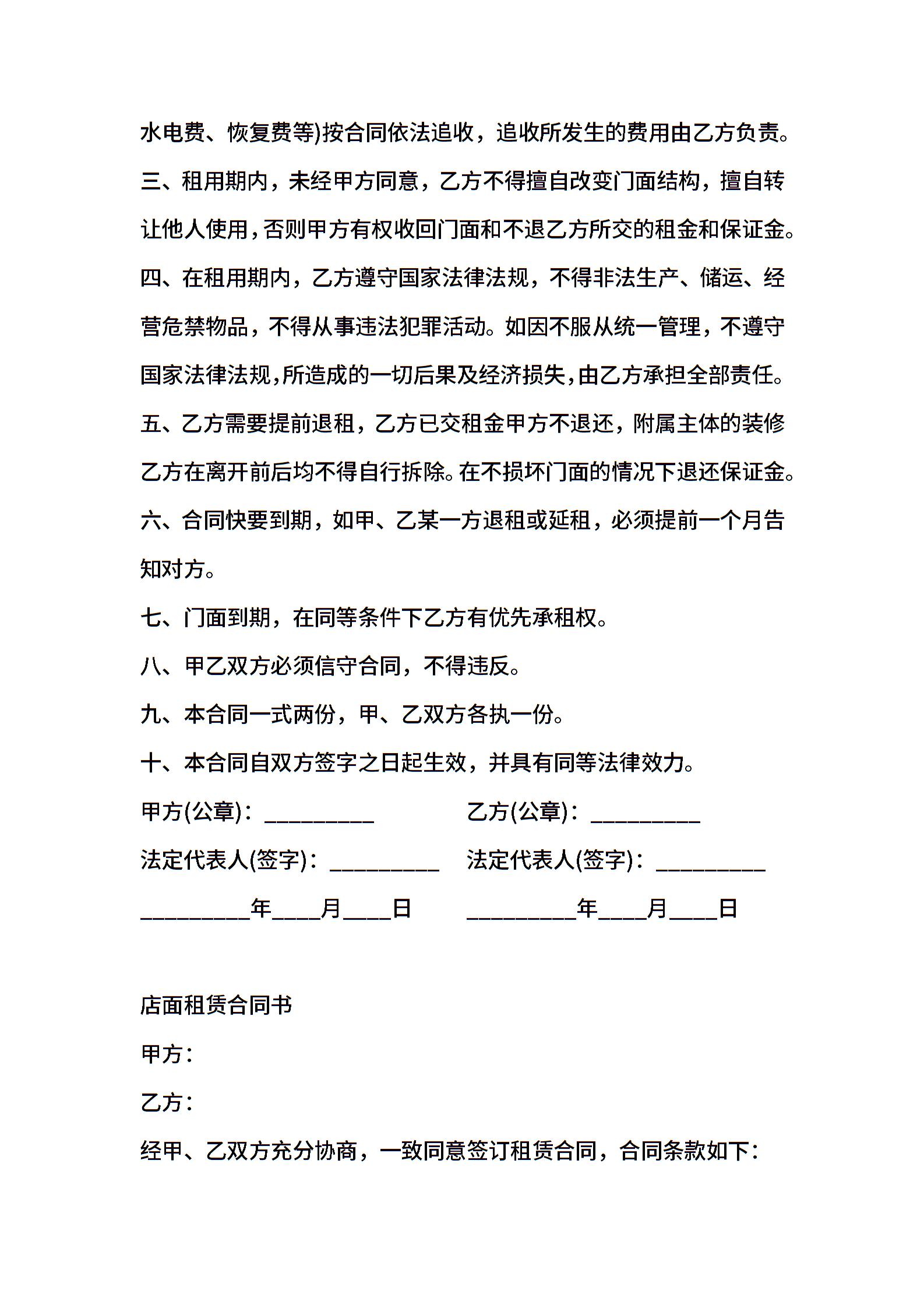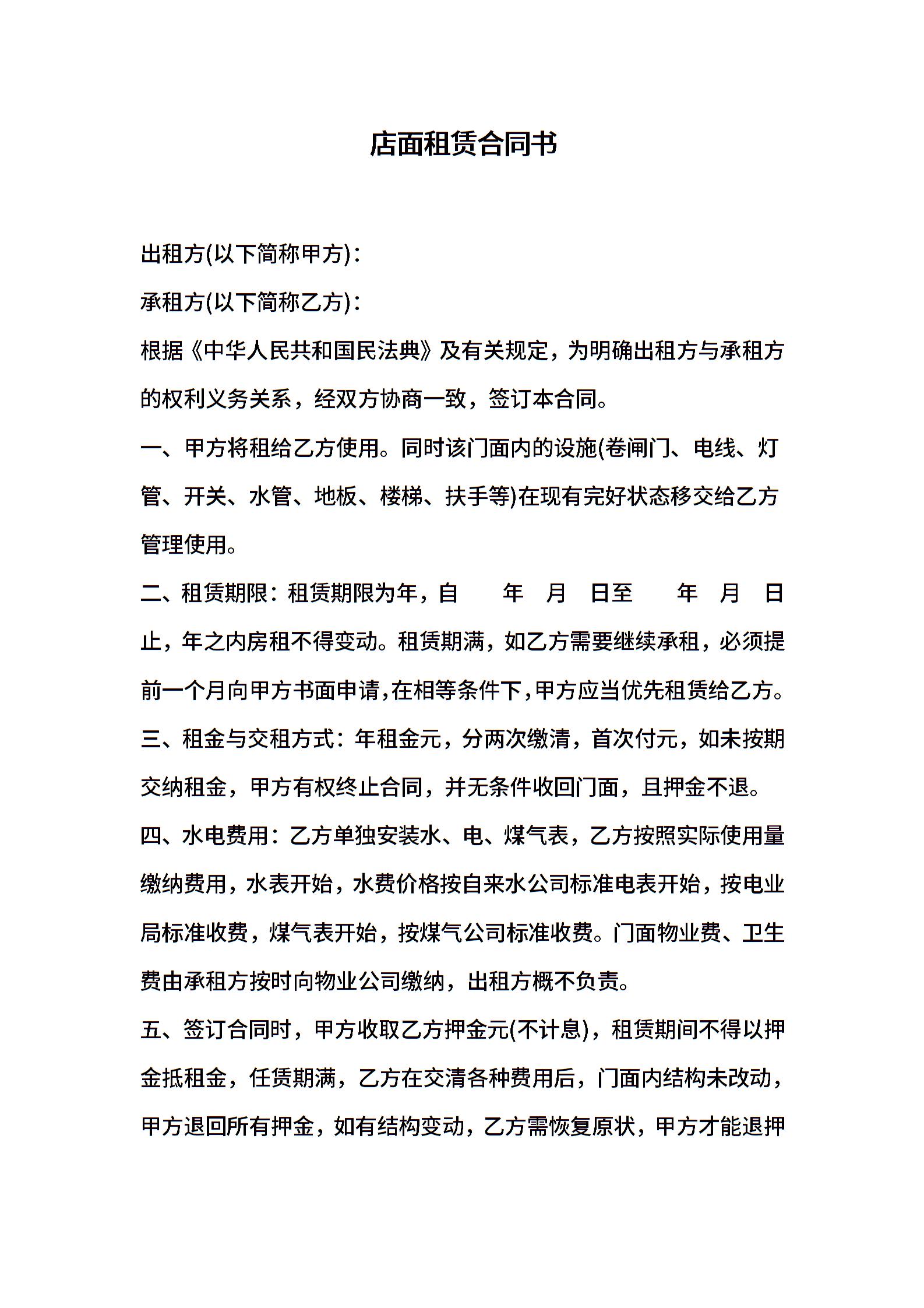 店面租赁合同书