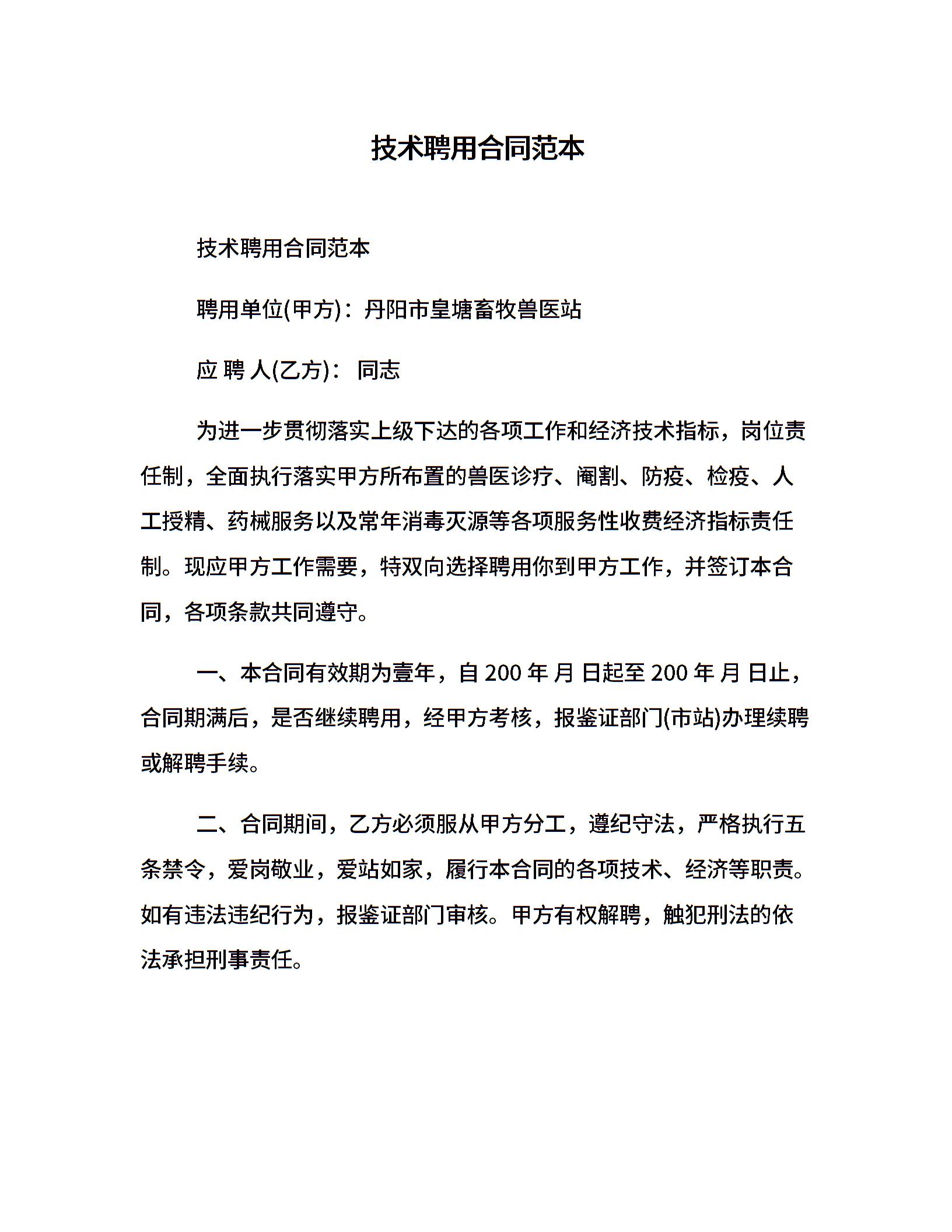 技术聘用合同范本