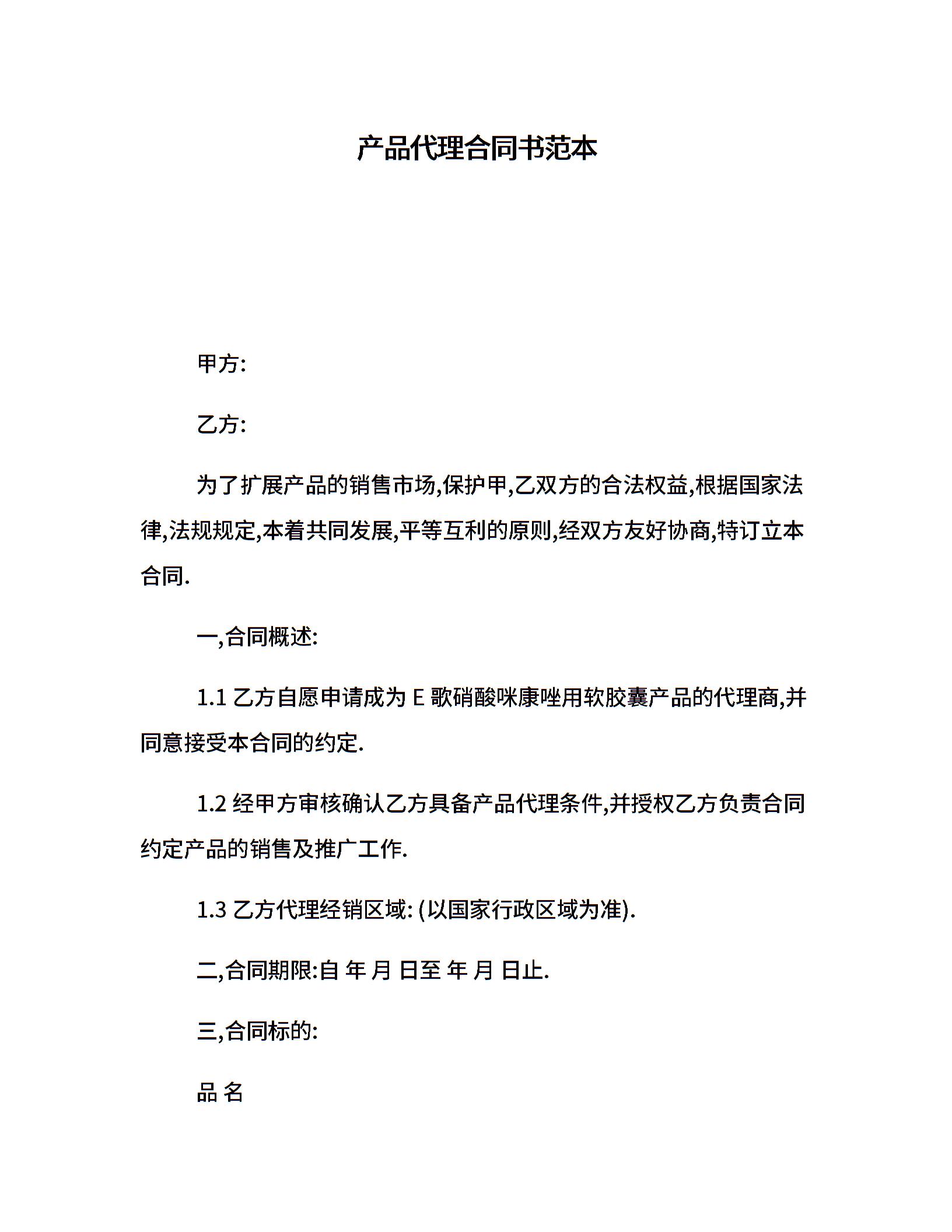 产品代理合同书范本