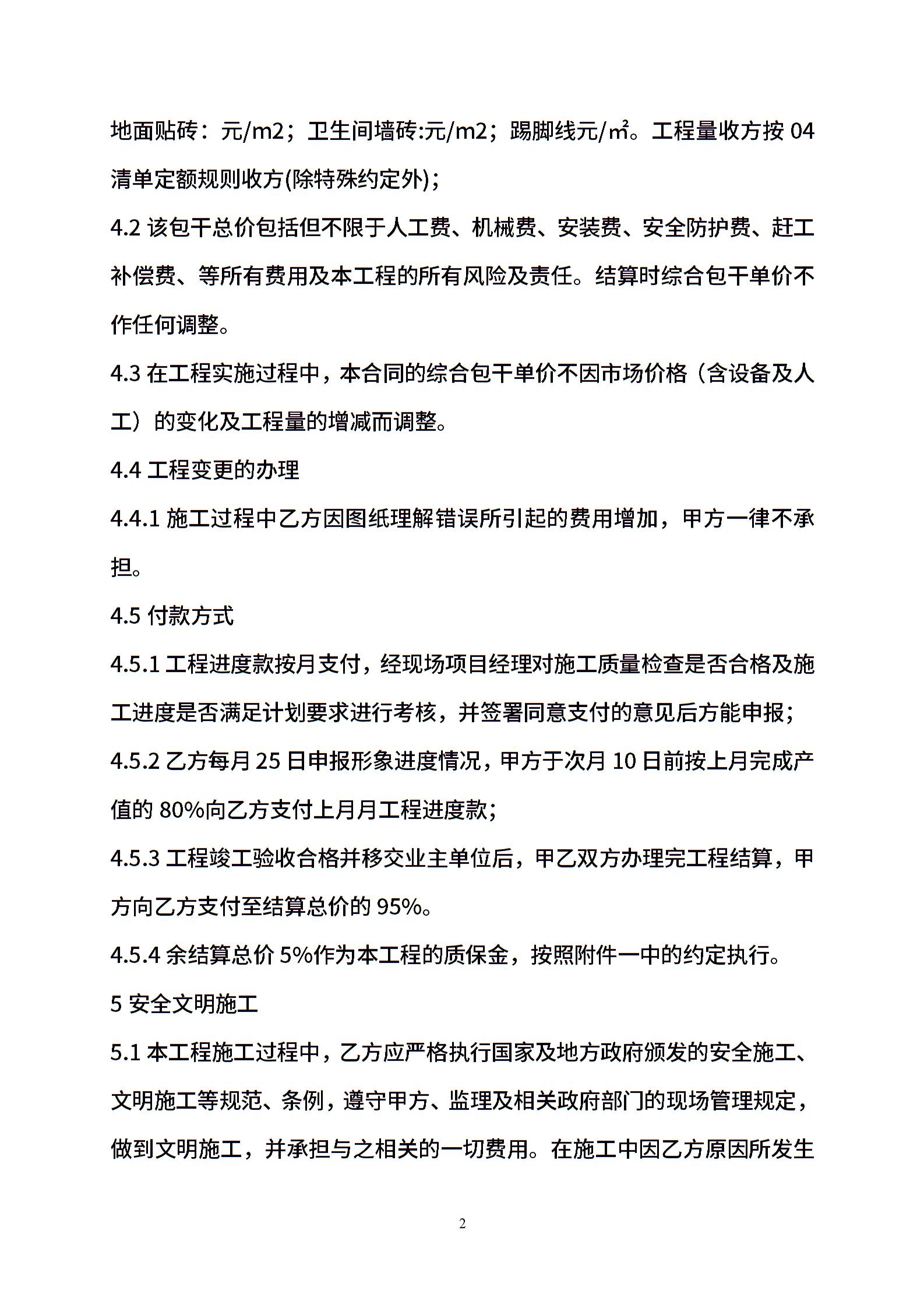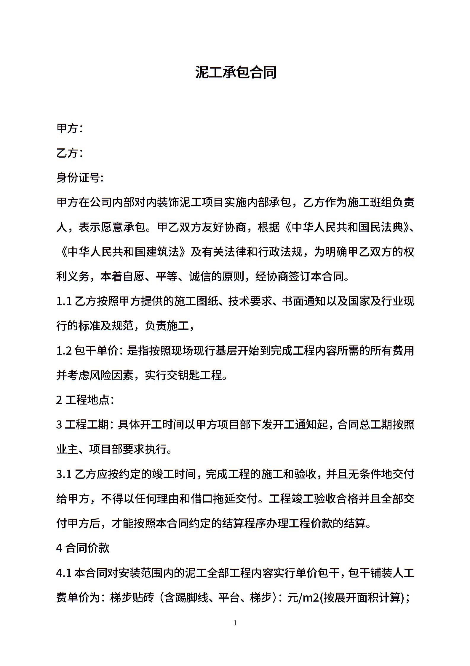 泥工承包施工合同合同