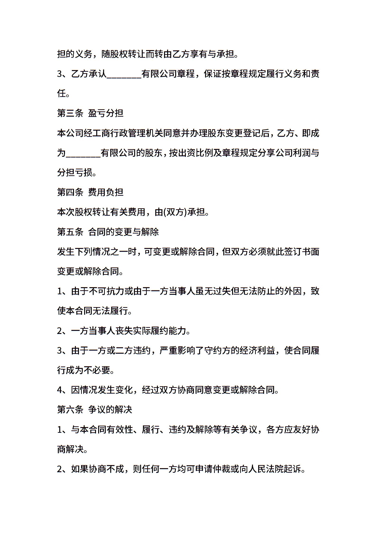 • 分类 股权转让协议