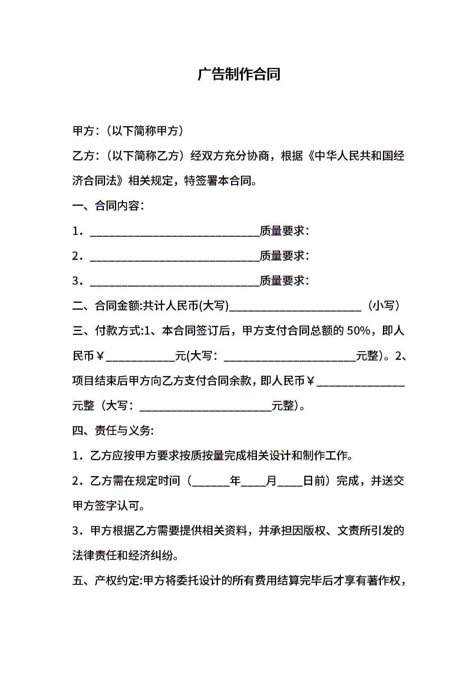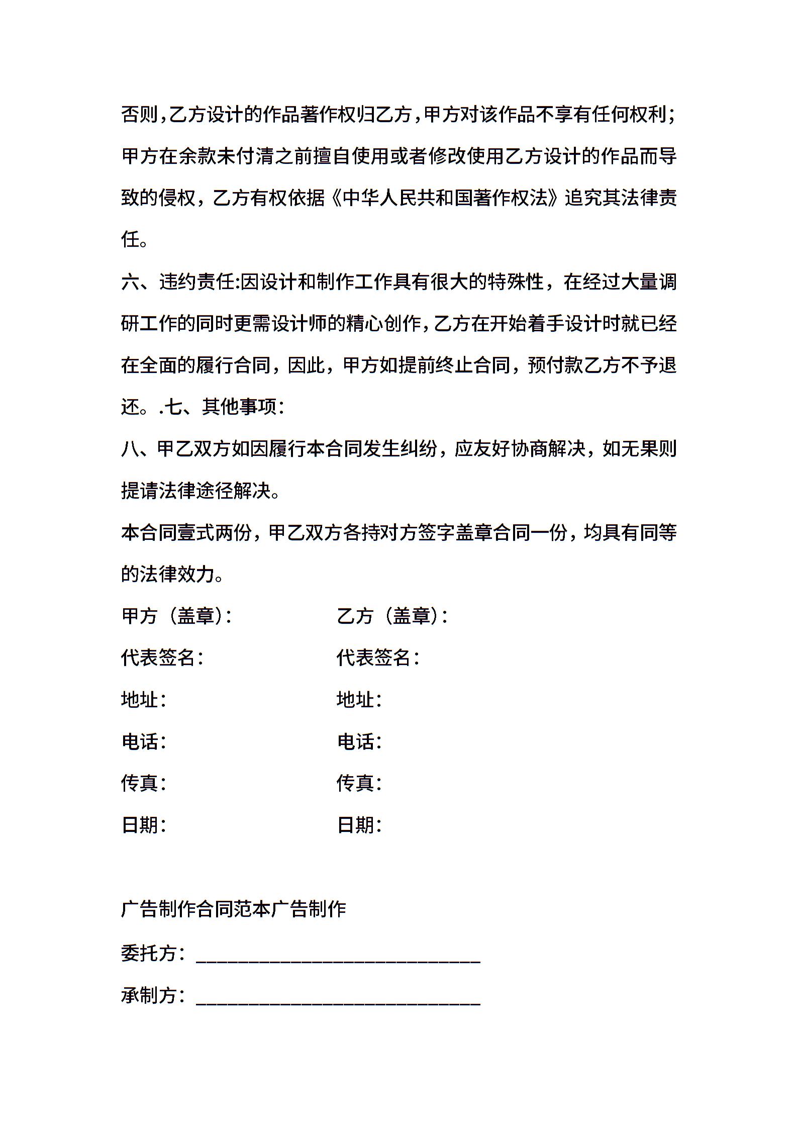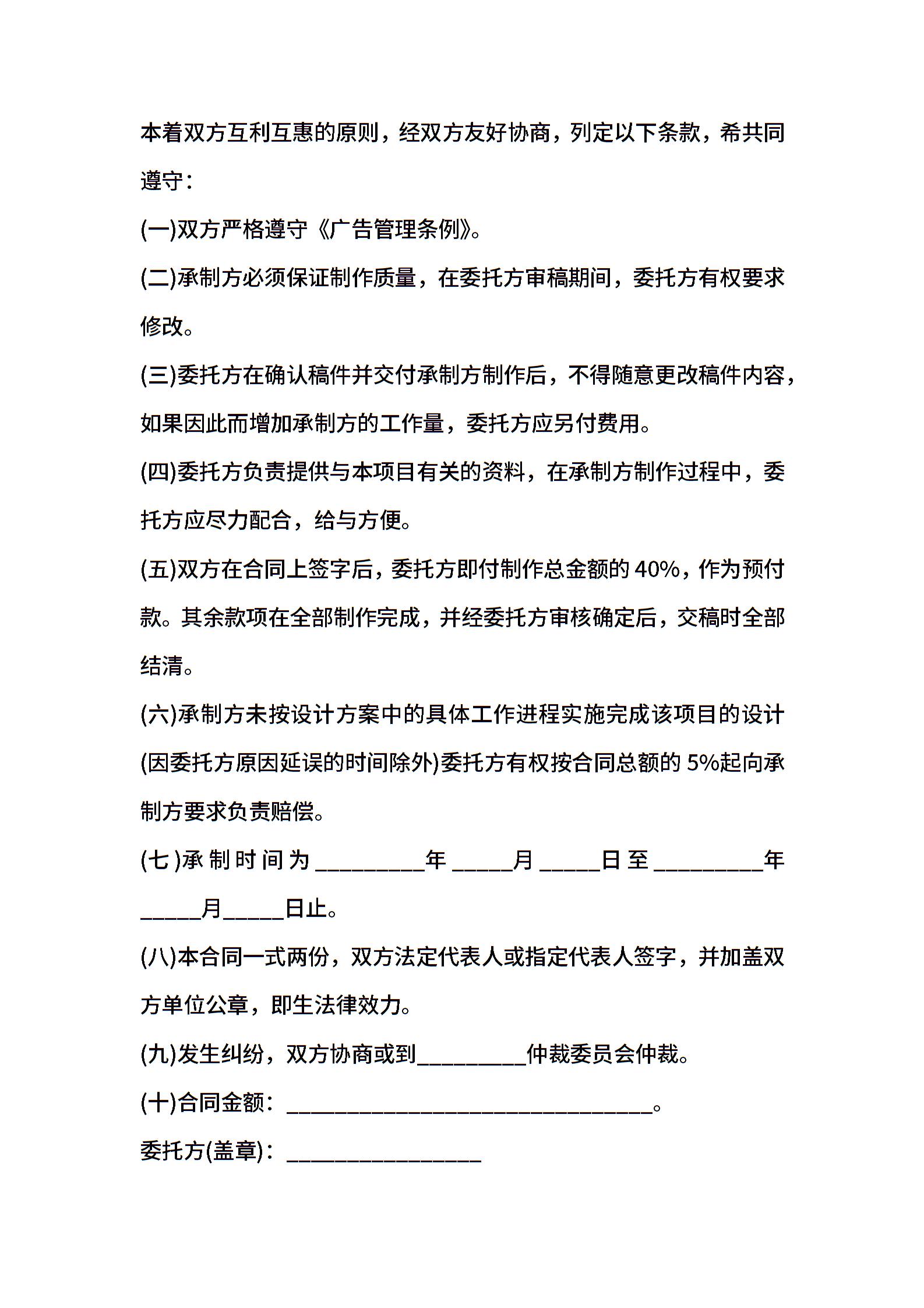 广告制作合同范文:广告制作合同