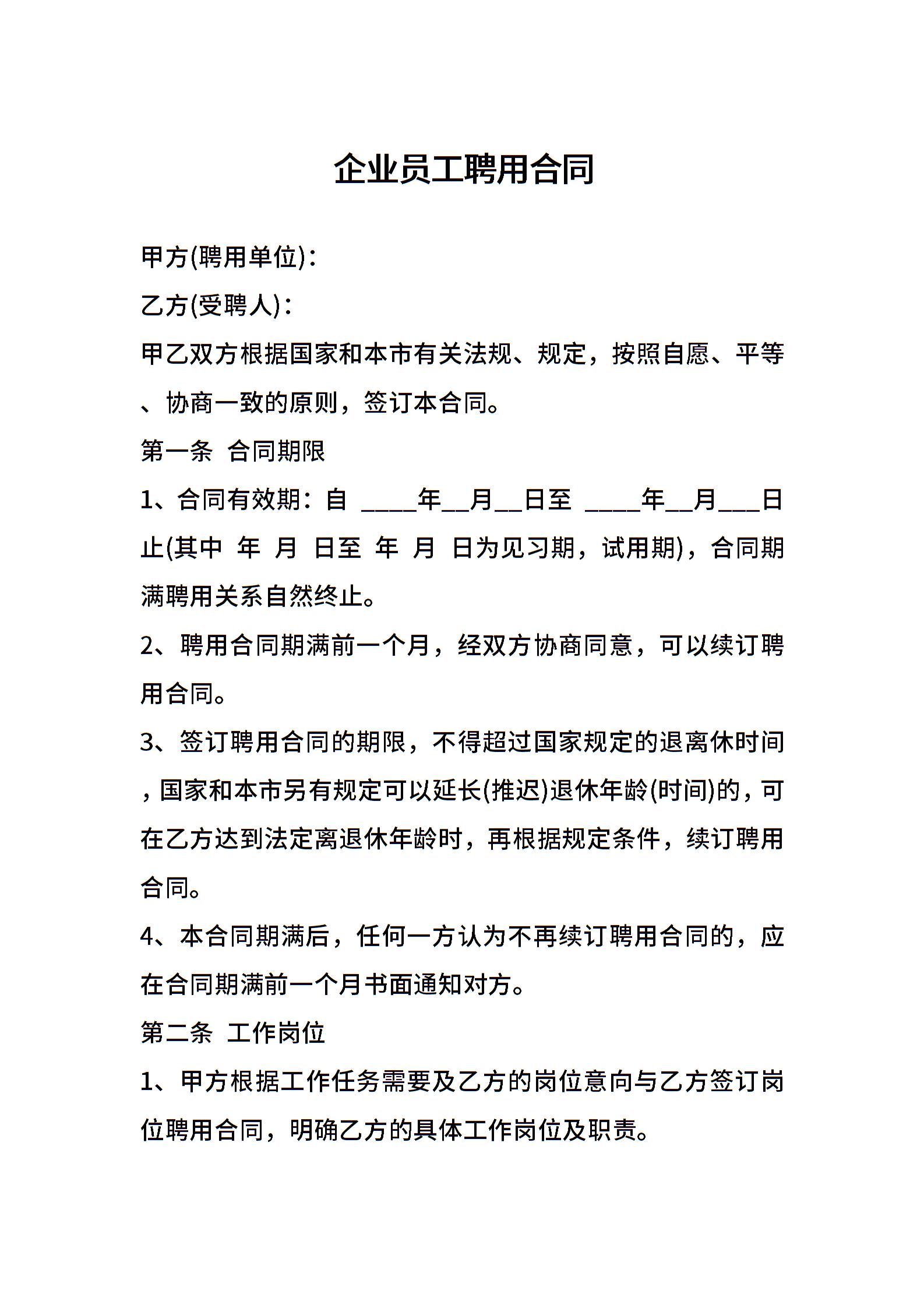 企业员工聘用合同