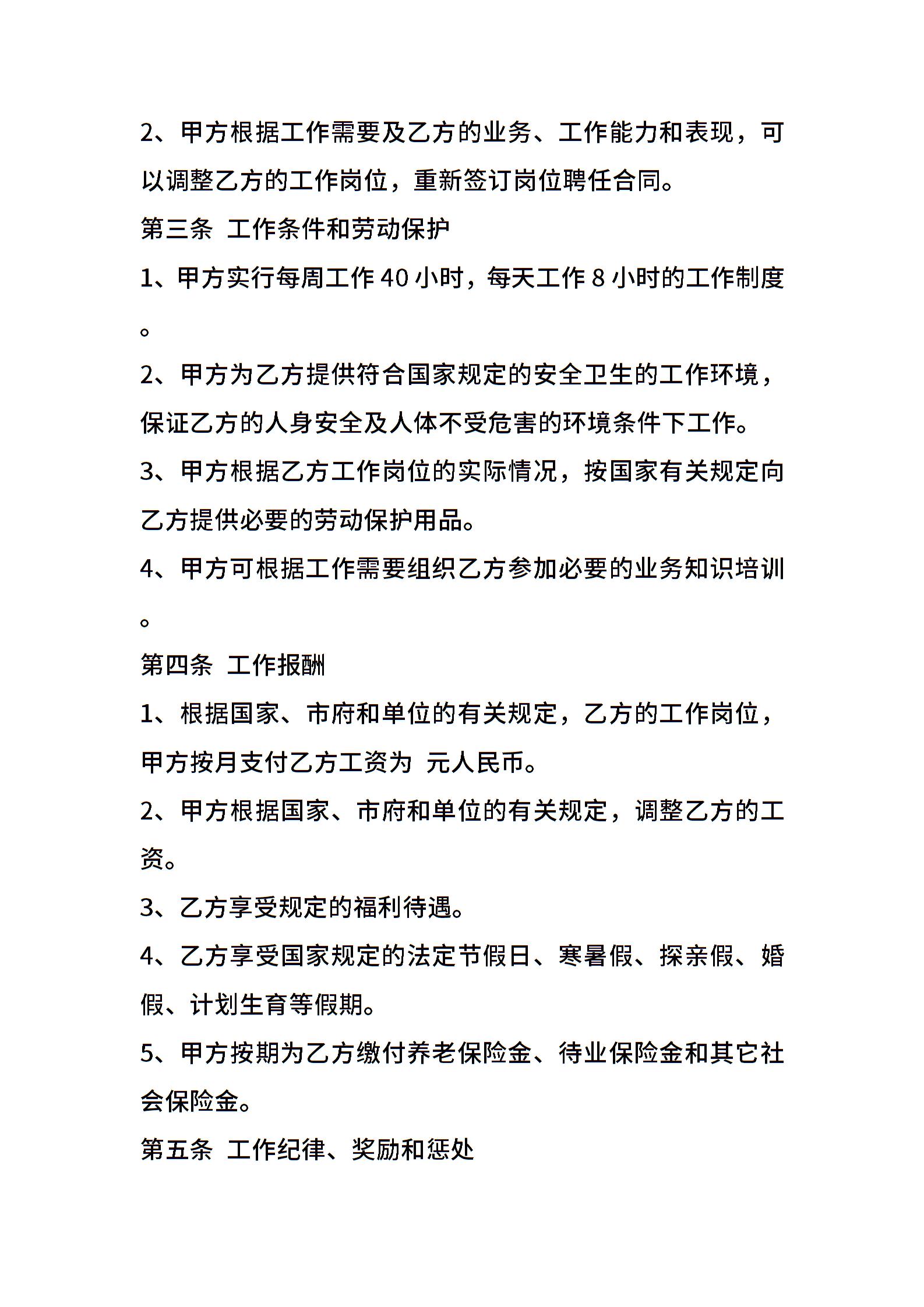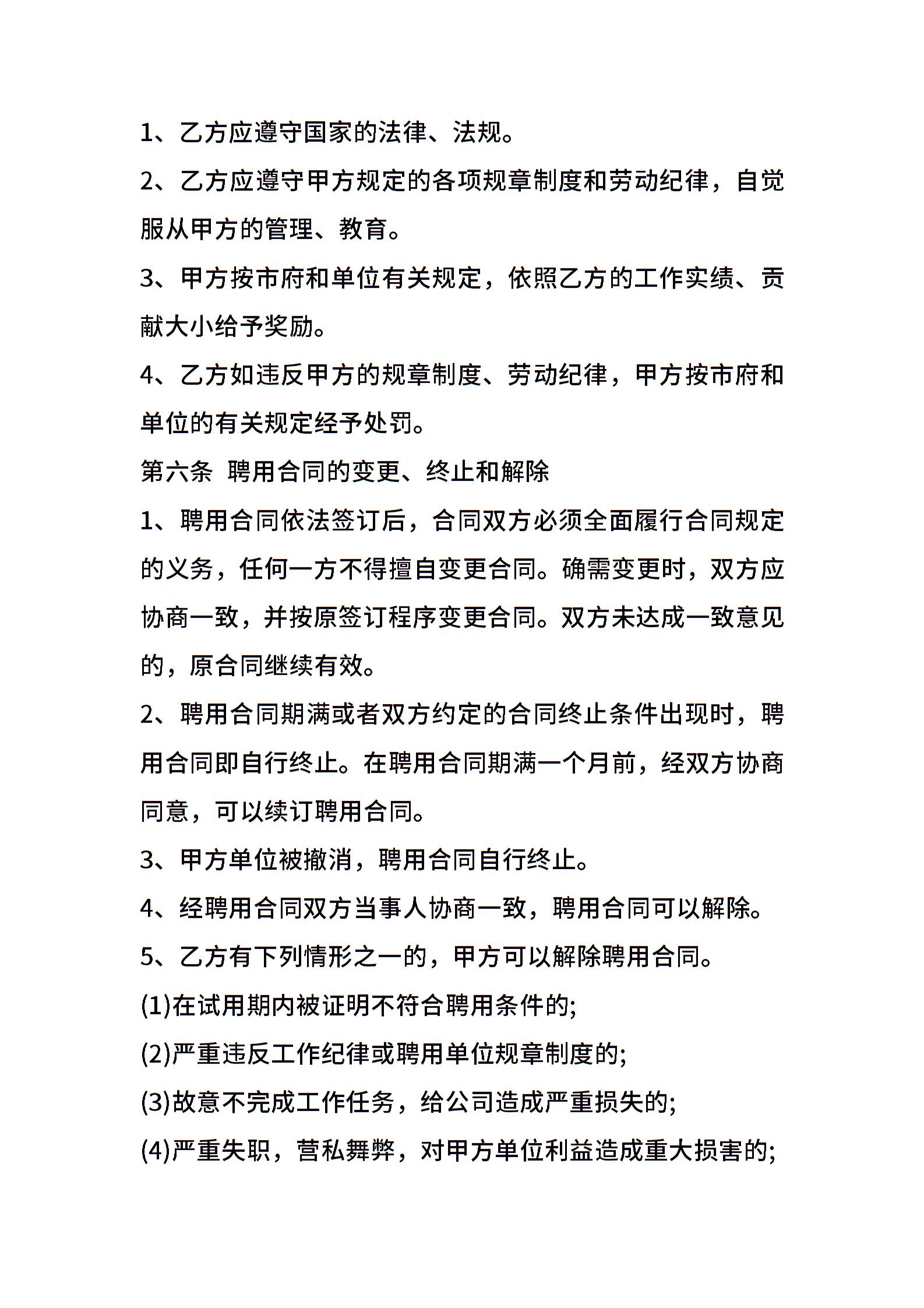 • 分类 聘用合同