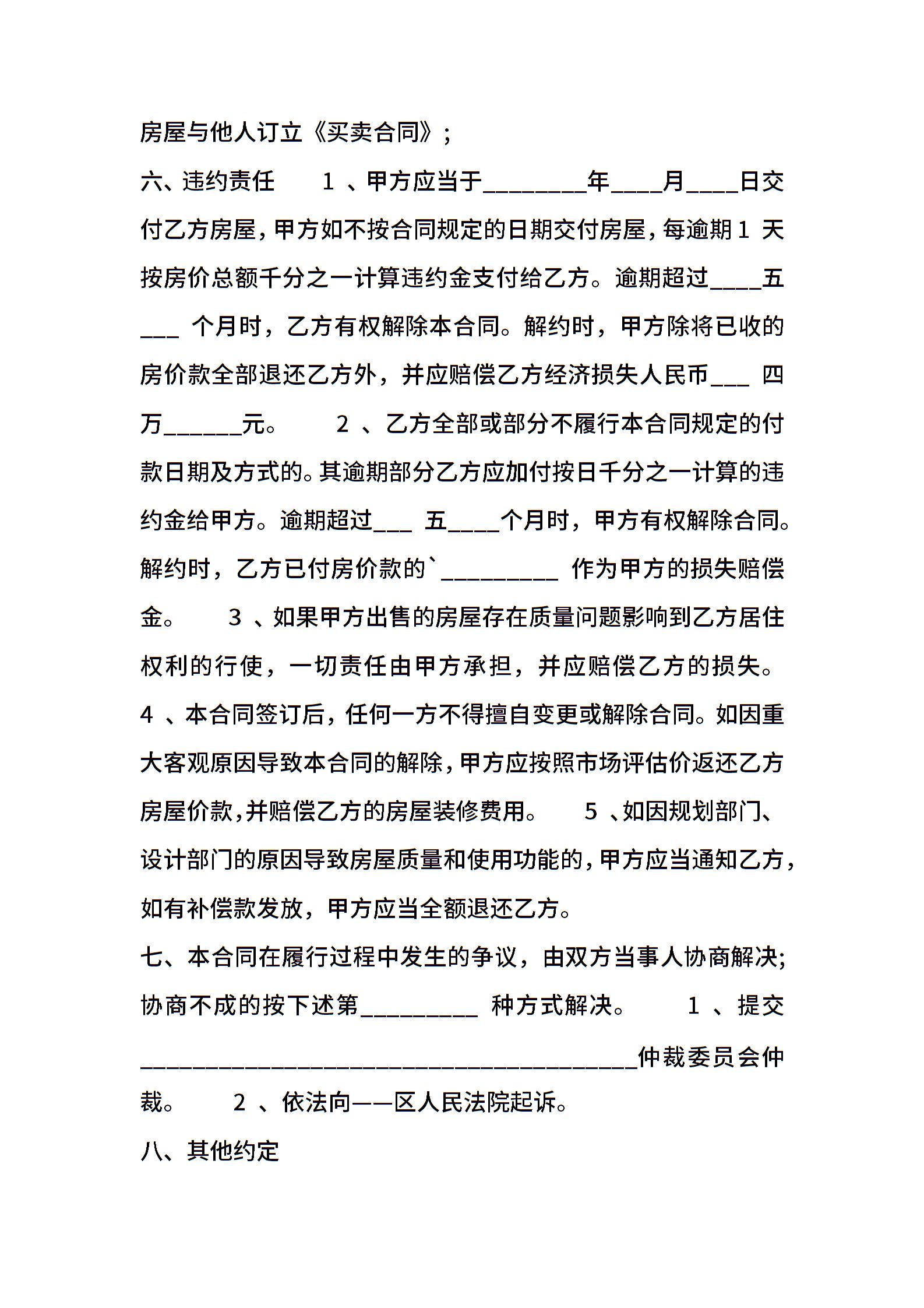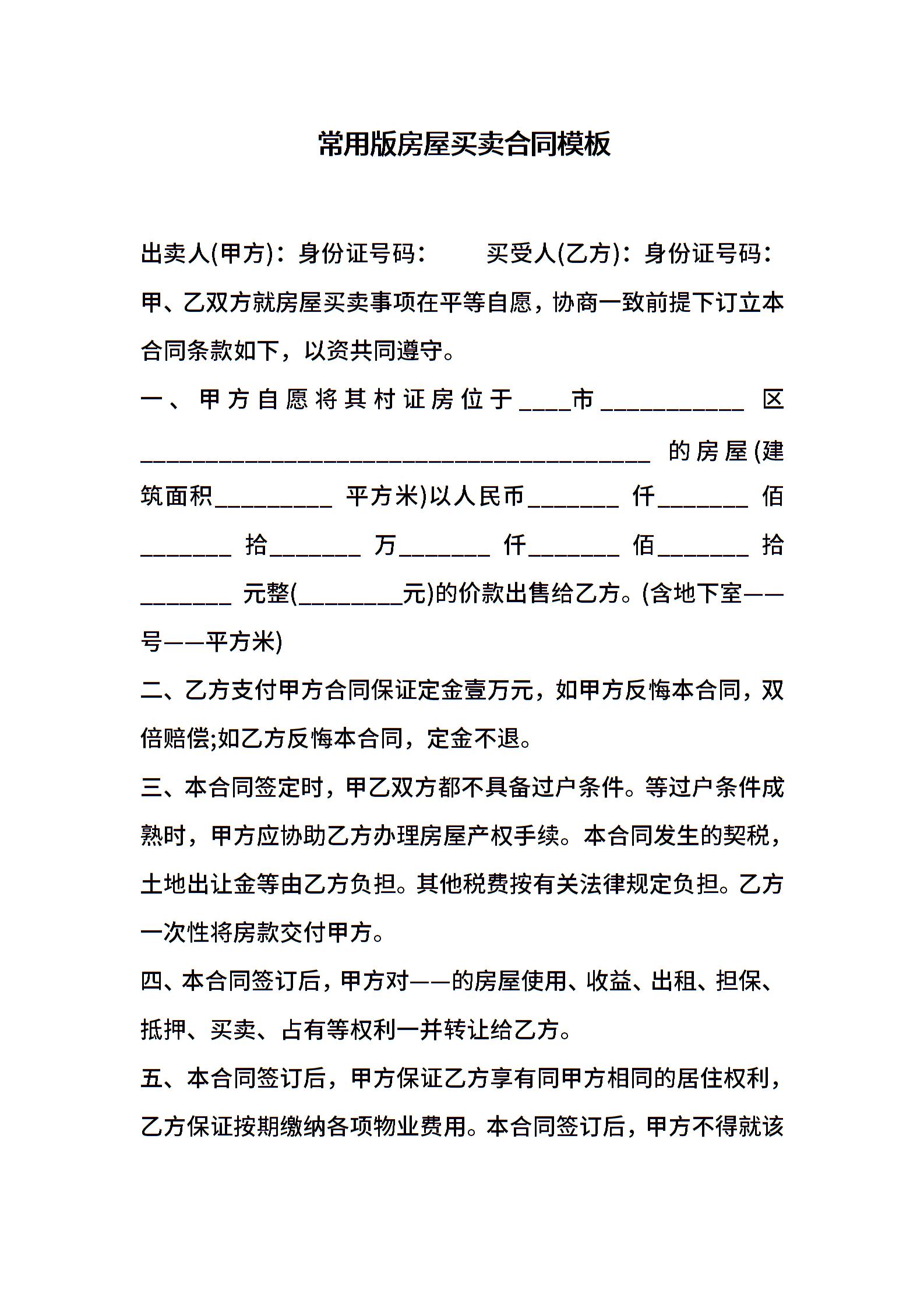常用版房屋买卖合同模板