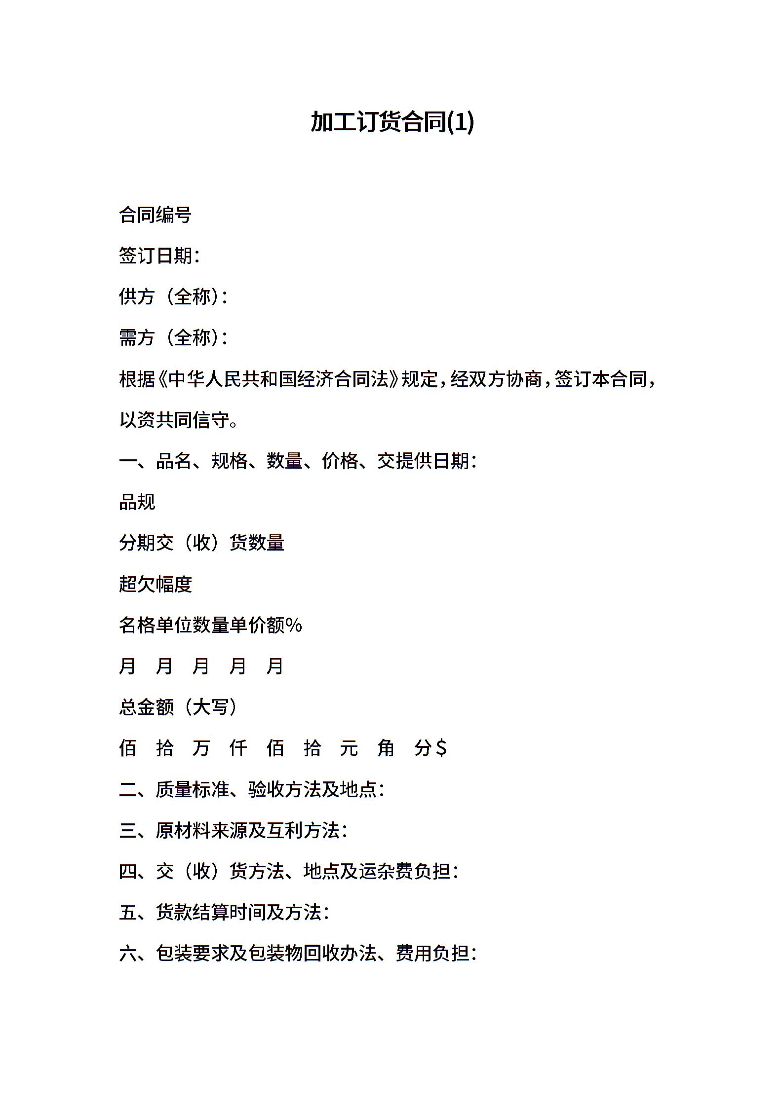 当前位置:量子办公 > 合同模板 > 加工合同 >