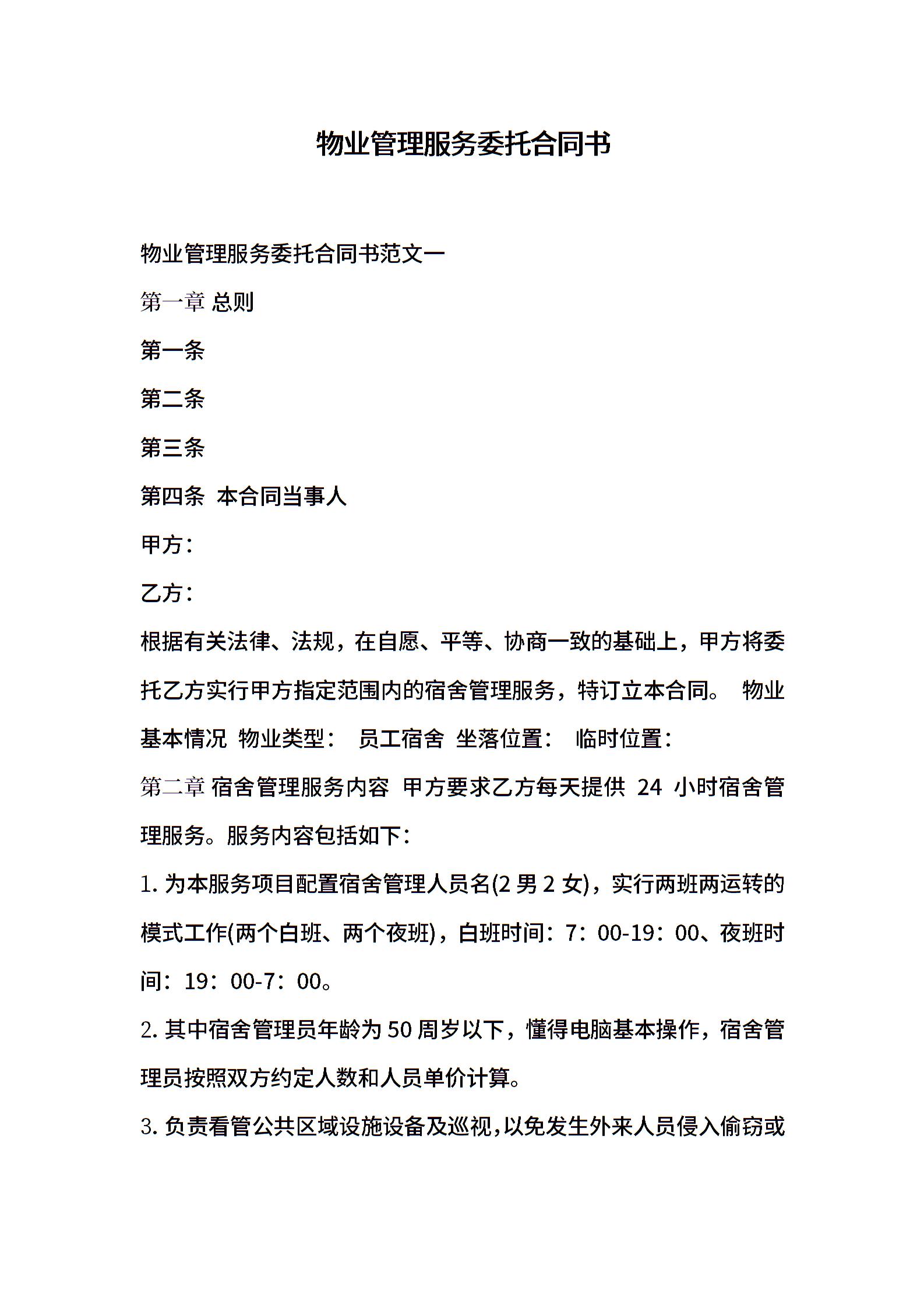 物业管理服务委托合同书