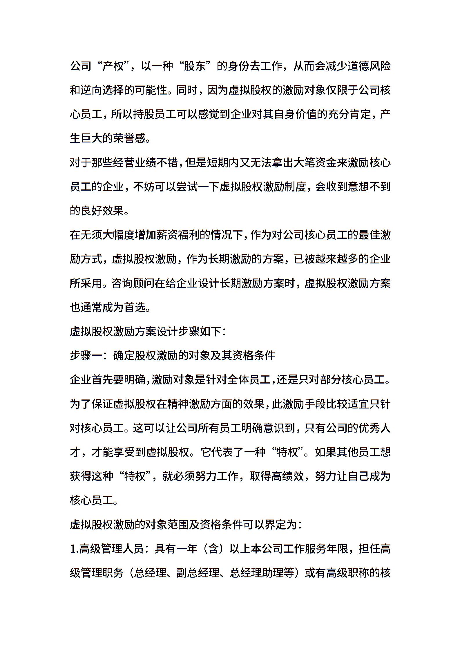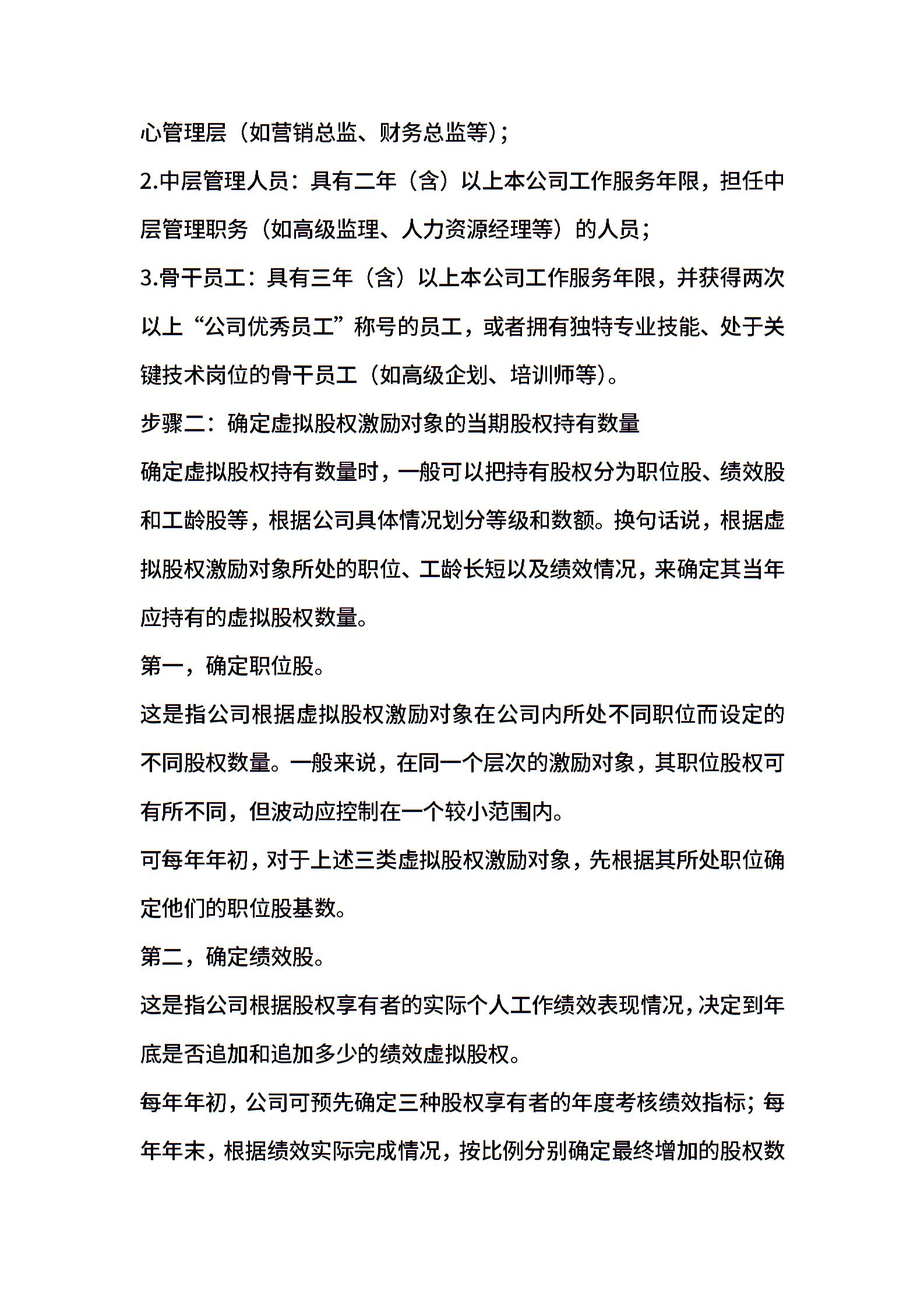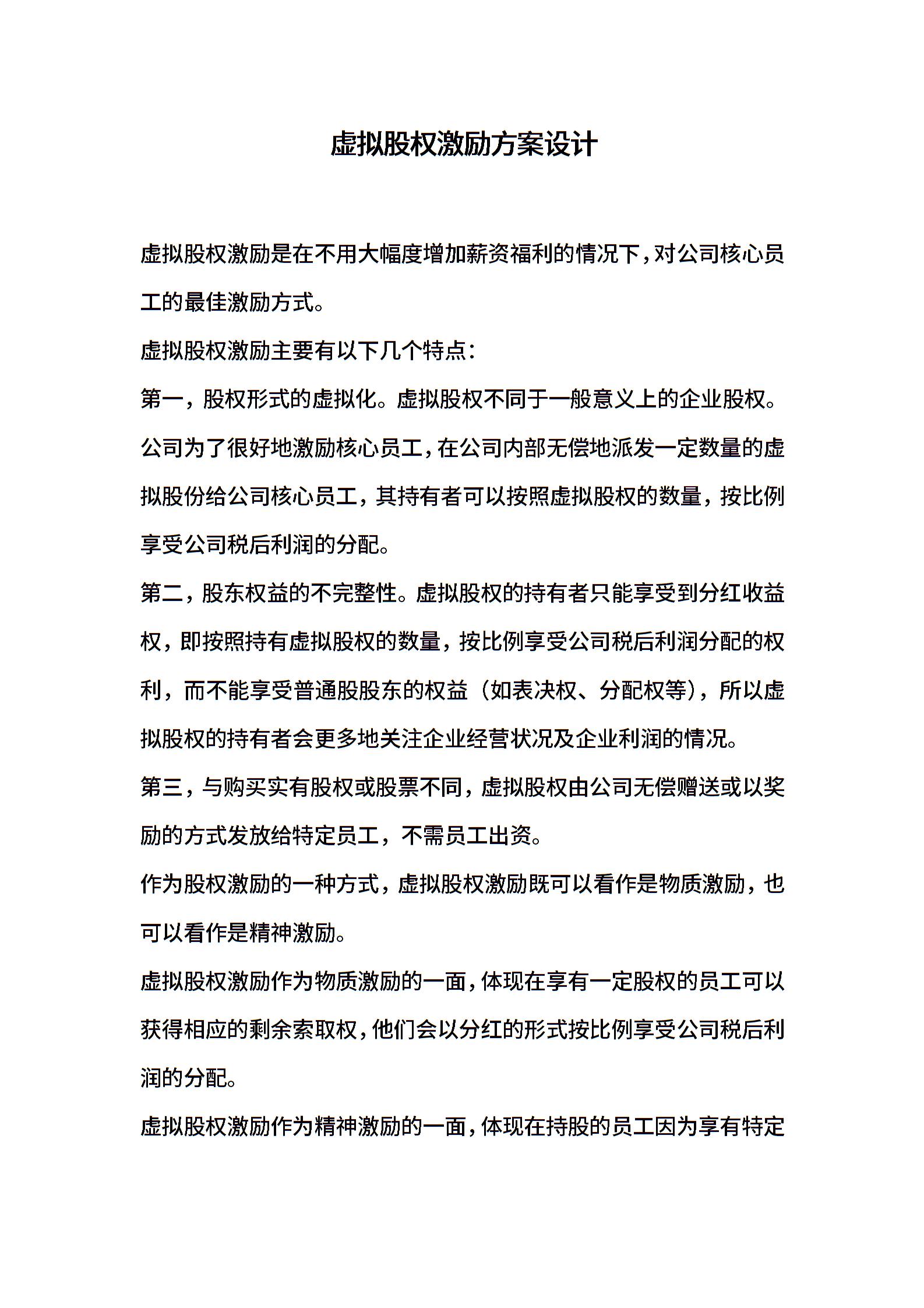 虚拟股权激励方案设计