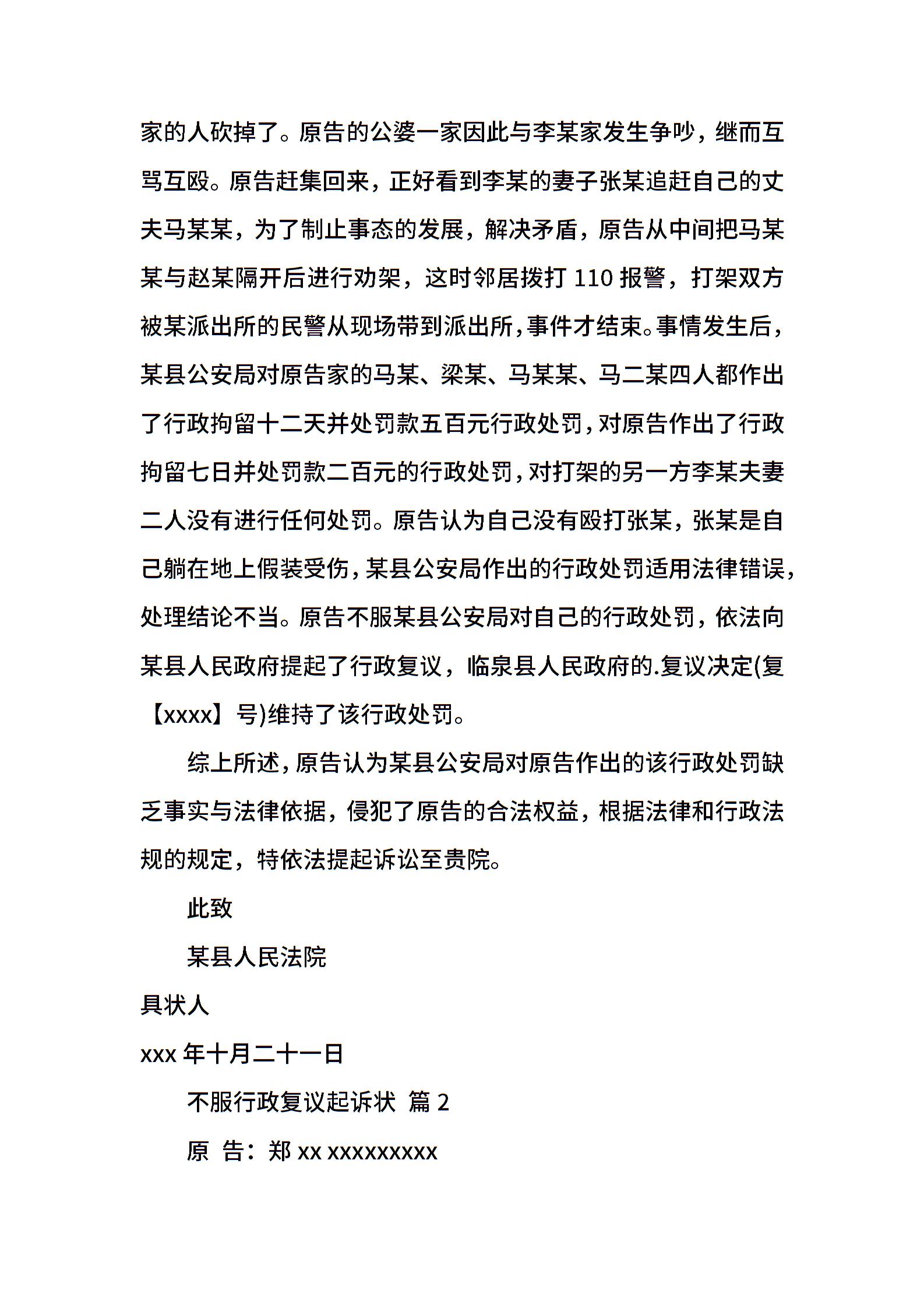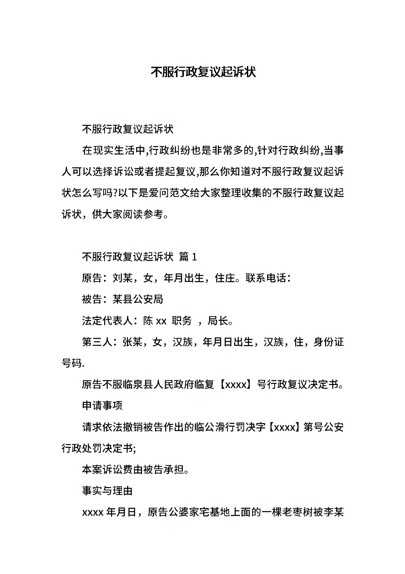 不服行政复议起诉状