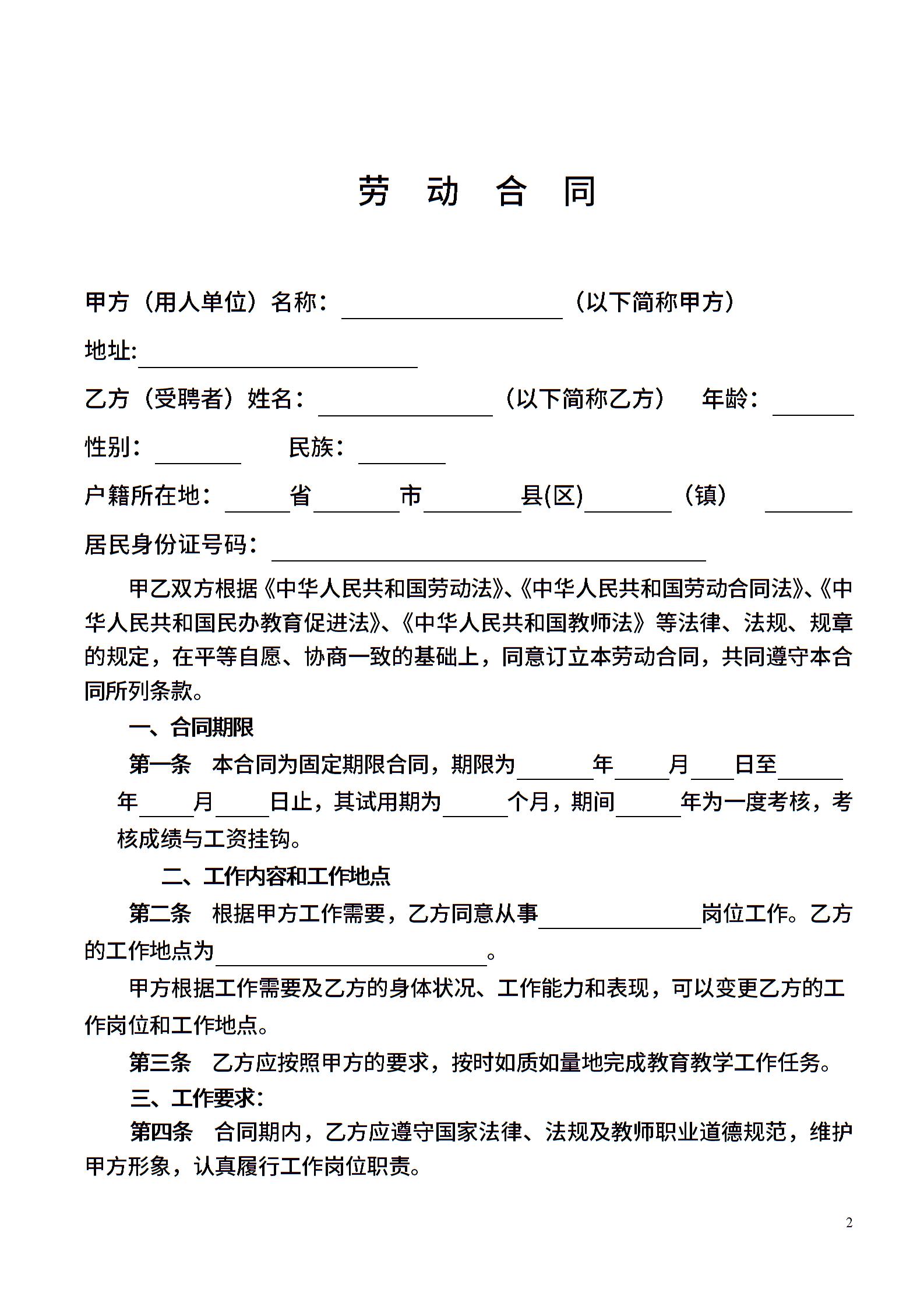 • 分类 聘用合同
