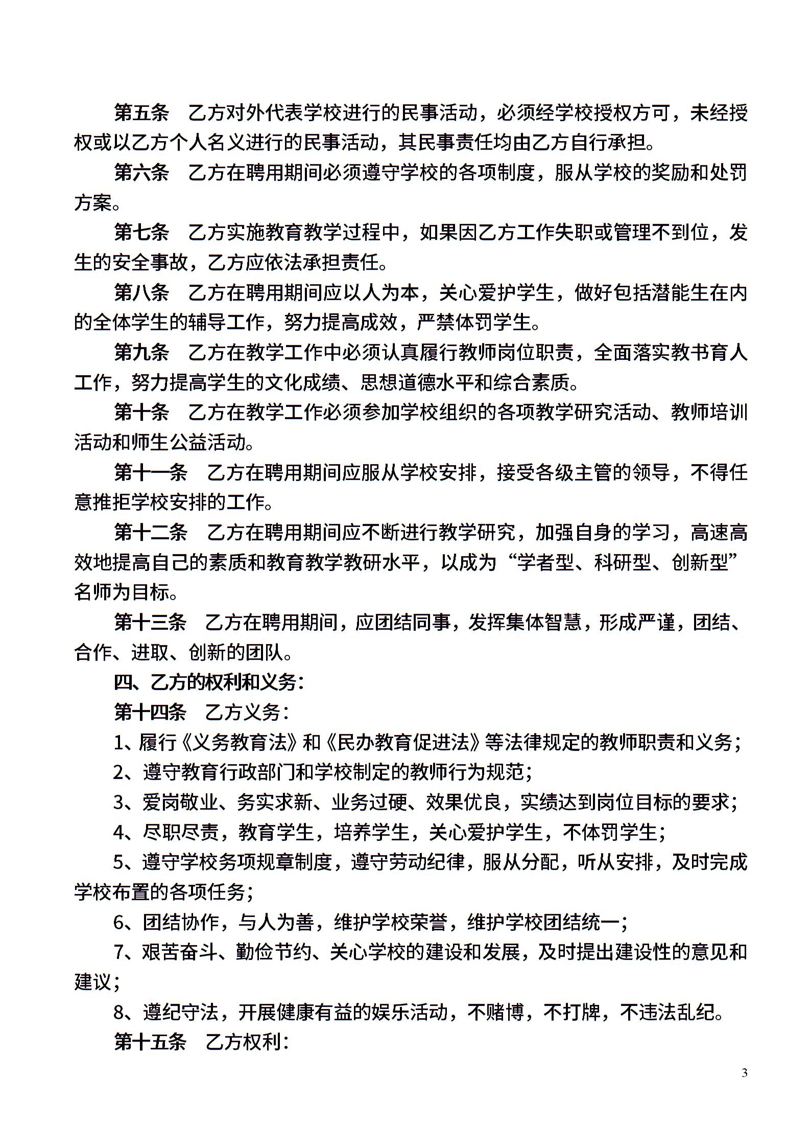 小学教师聘用合同模板