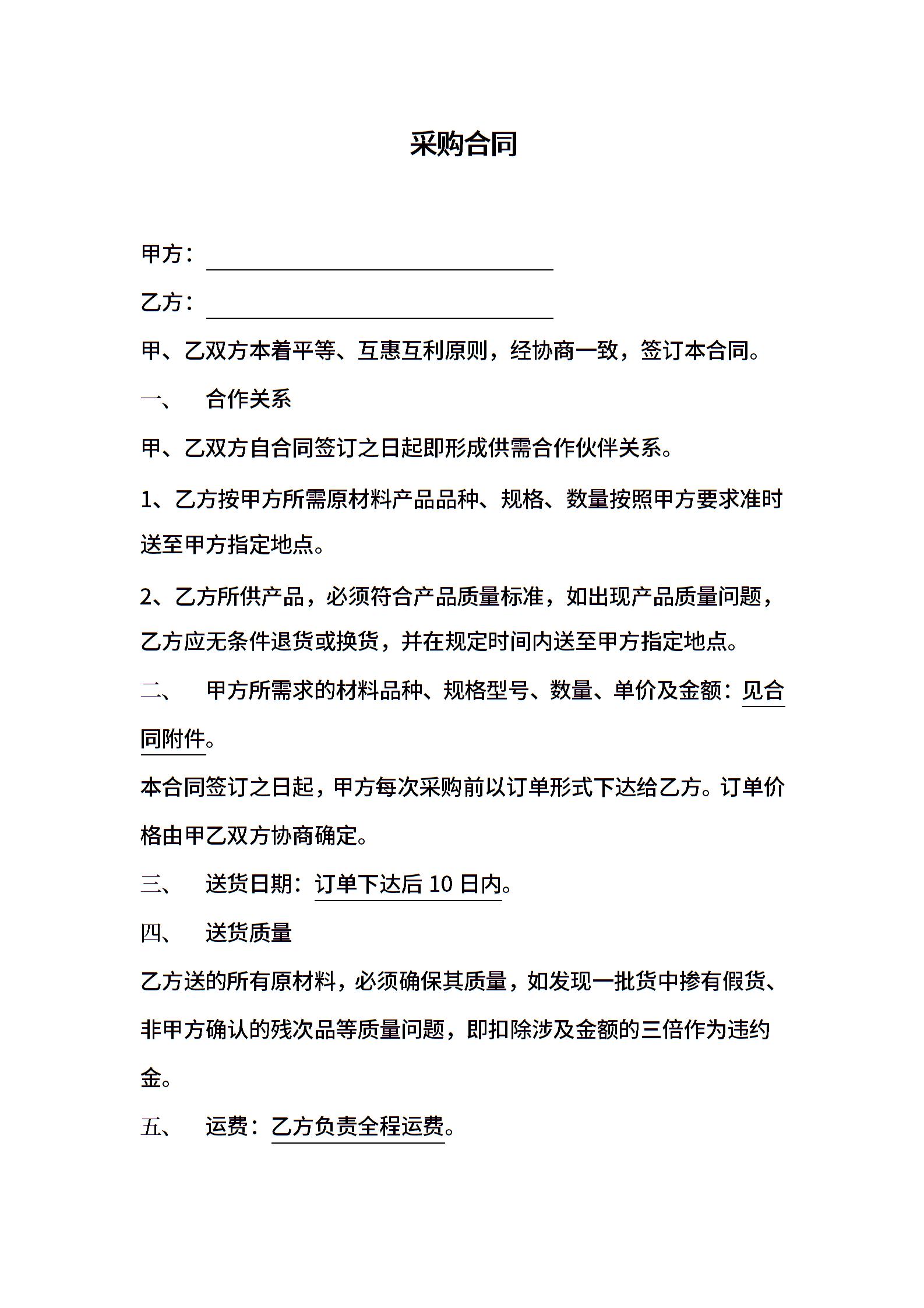原材料采购合同范本(范本)