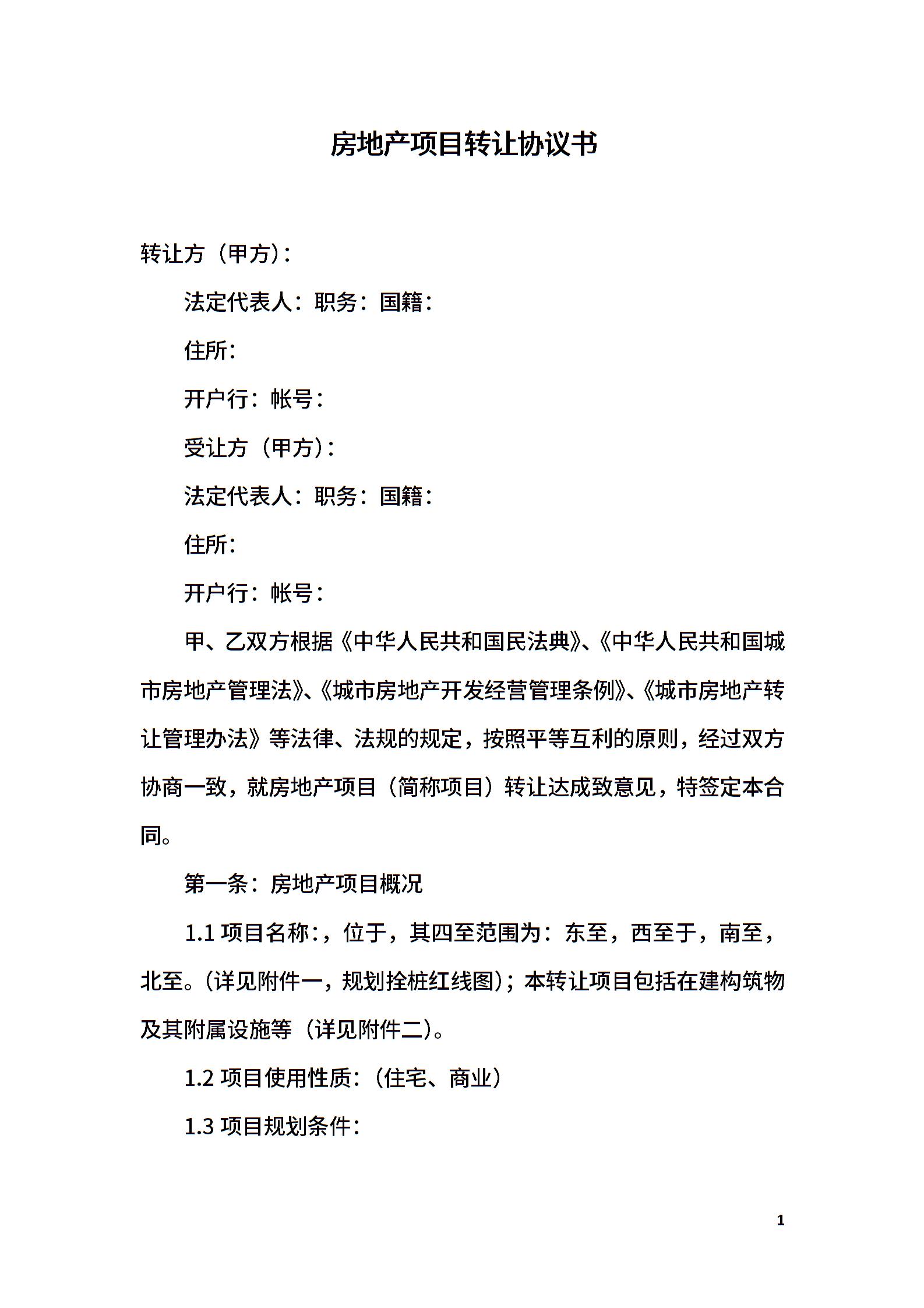 房地产项目转让协议书