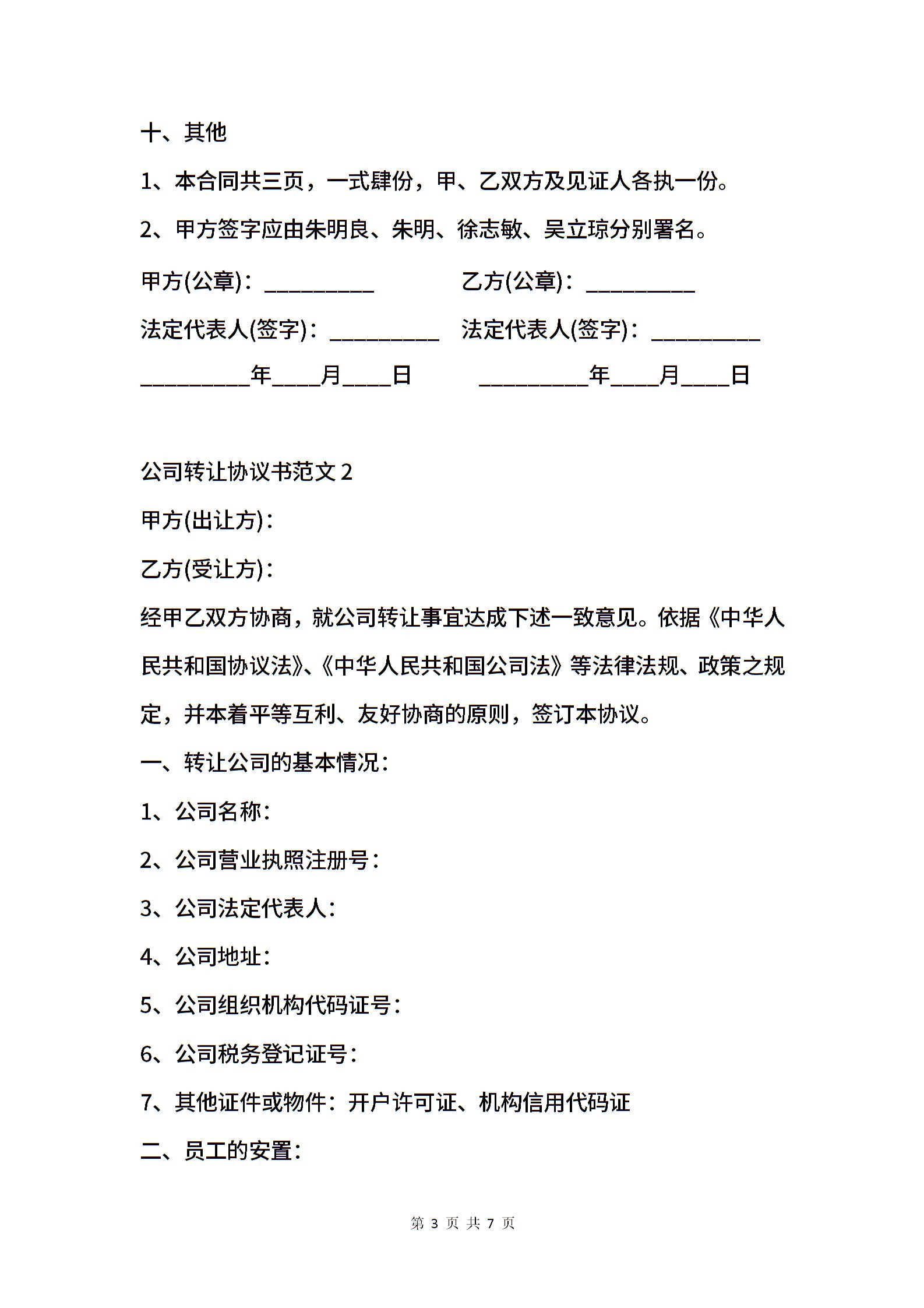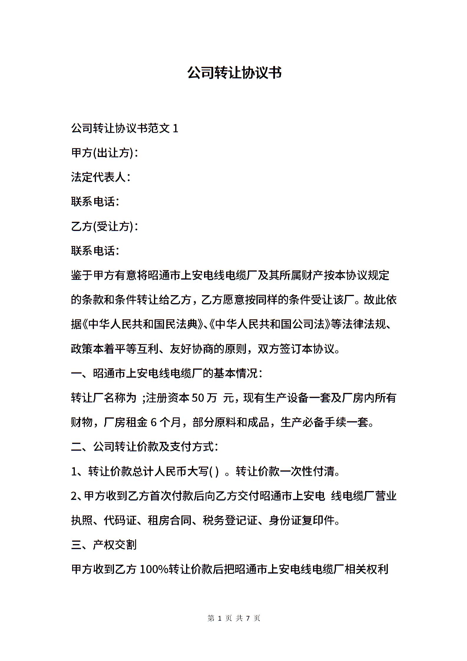 公司转让协议书