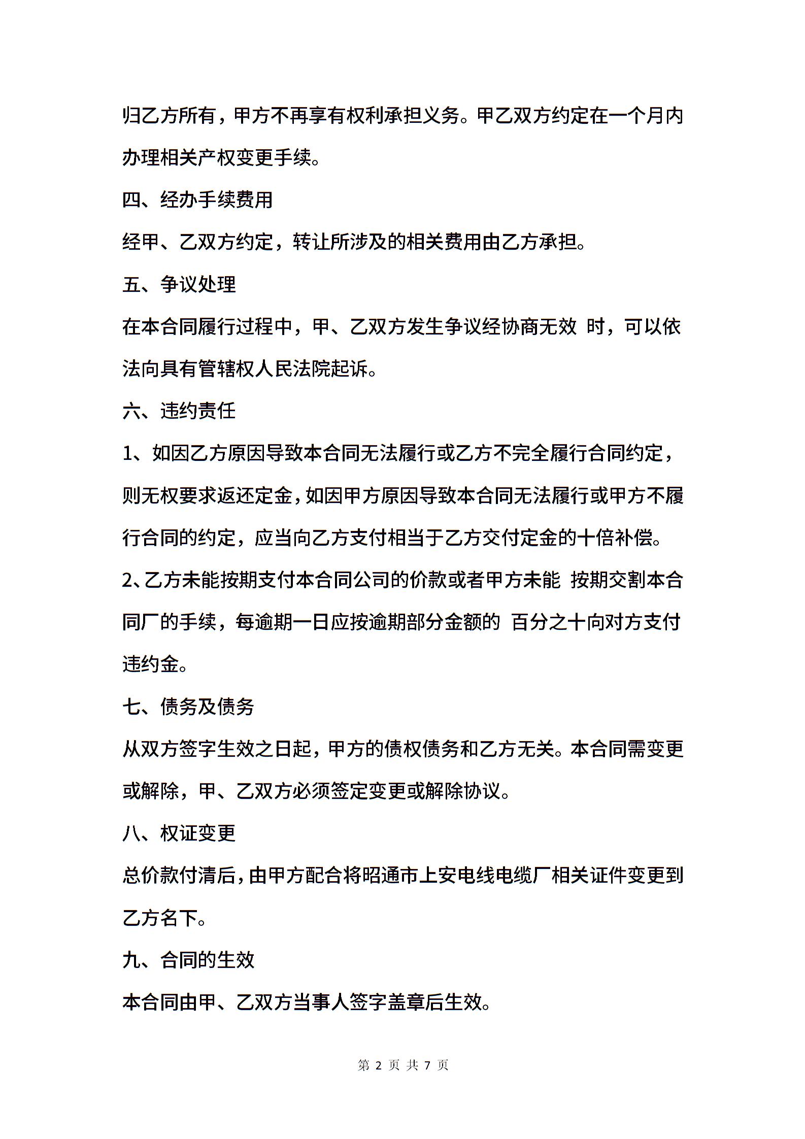当前位置:量子办公 > 合同模板 > 转让合同 >