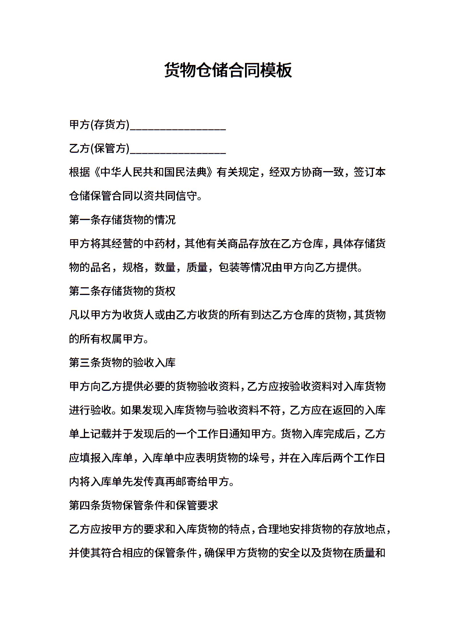 货物仓储合同模板