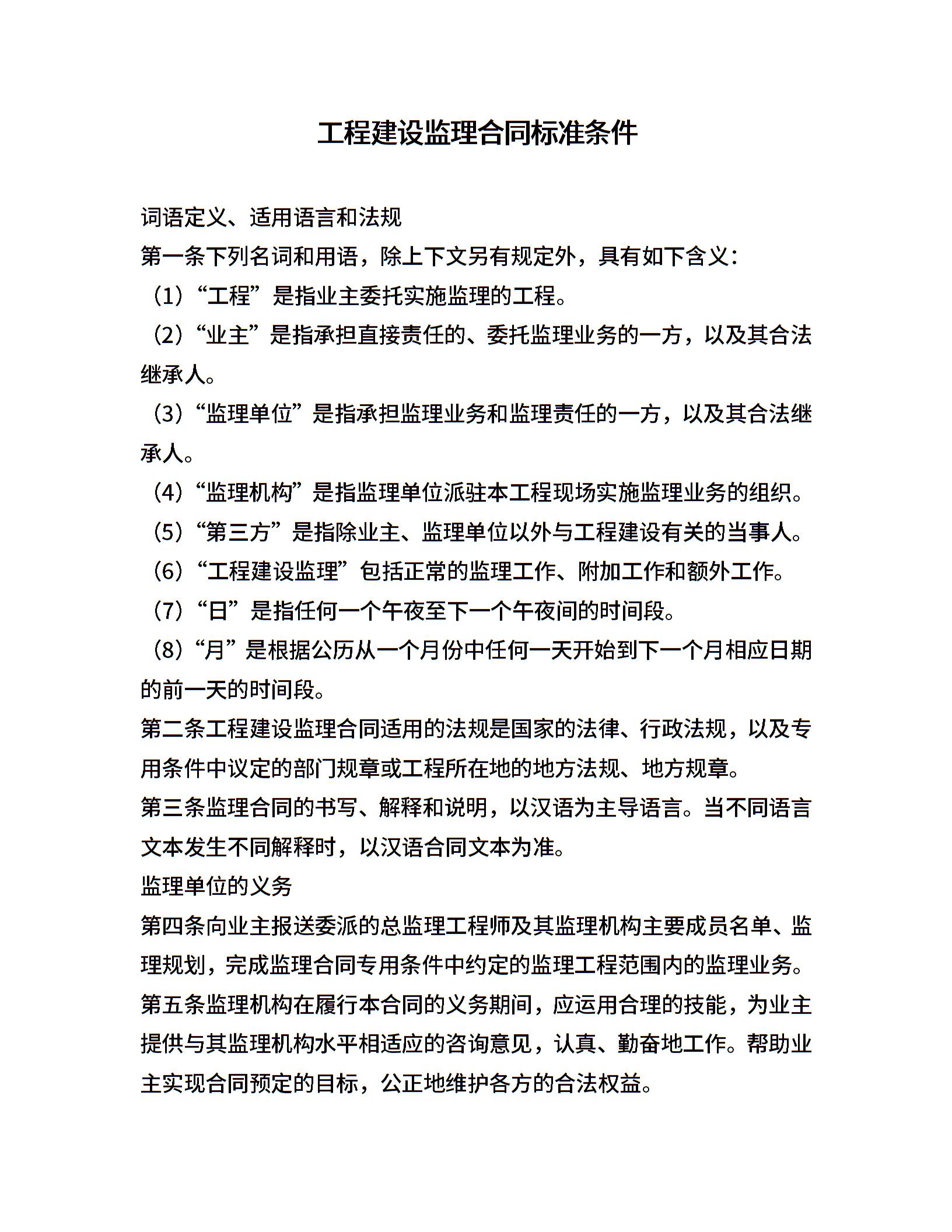 工程建设监理合同标准条件