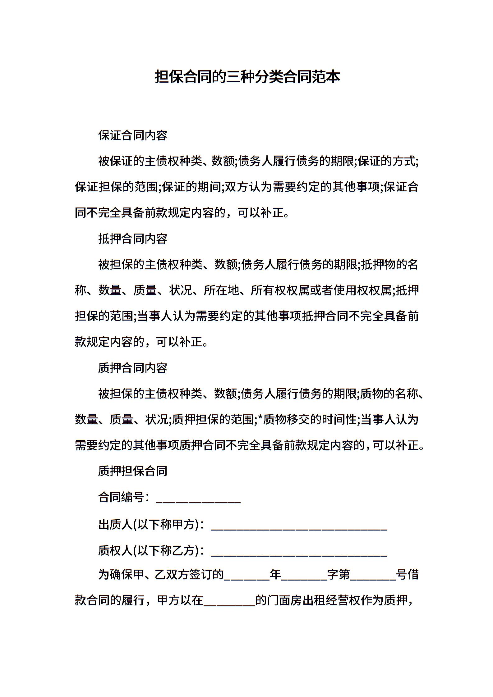 担保合同的三种分类合同范本