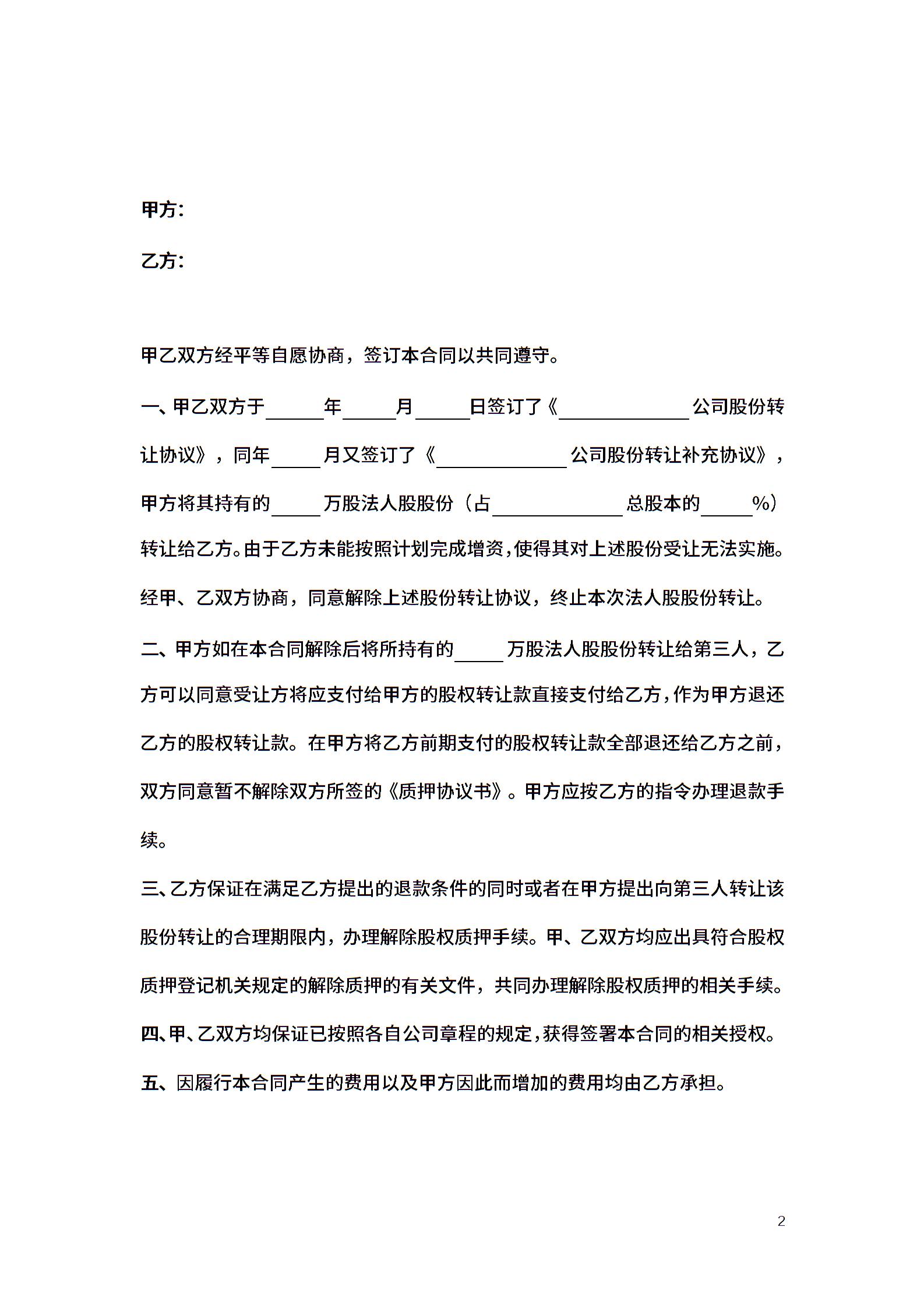 股权转让终止合同协议书范本
